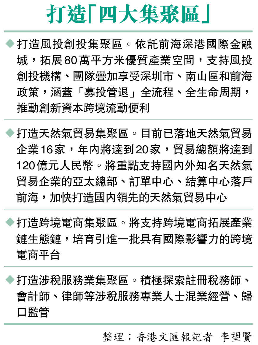 此外,前海還將推出四個「政策包」,加快打造風投創投、天然氣貿易、跨境電商和涉稅服務業四大集聚區。其中在天然氣貿易集聚區,目前前海已落地天然氣貿易企業16家,年內將達到20家,貿易總額將達到120億元。前海將重點支持國內外知名天然氣貿易企業的亞太總部、訂單中心、結算中心落戶前海,加快打造國內領先的天然氣貿易中心。