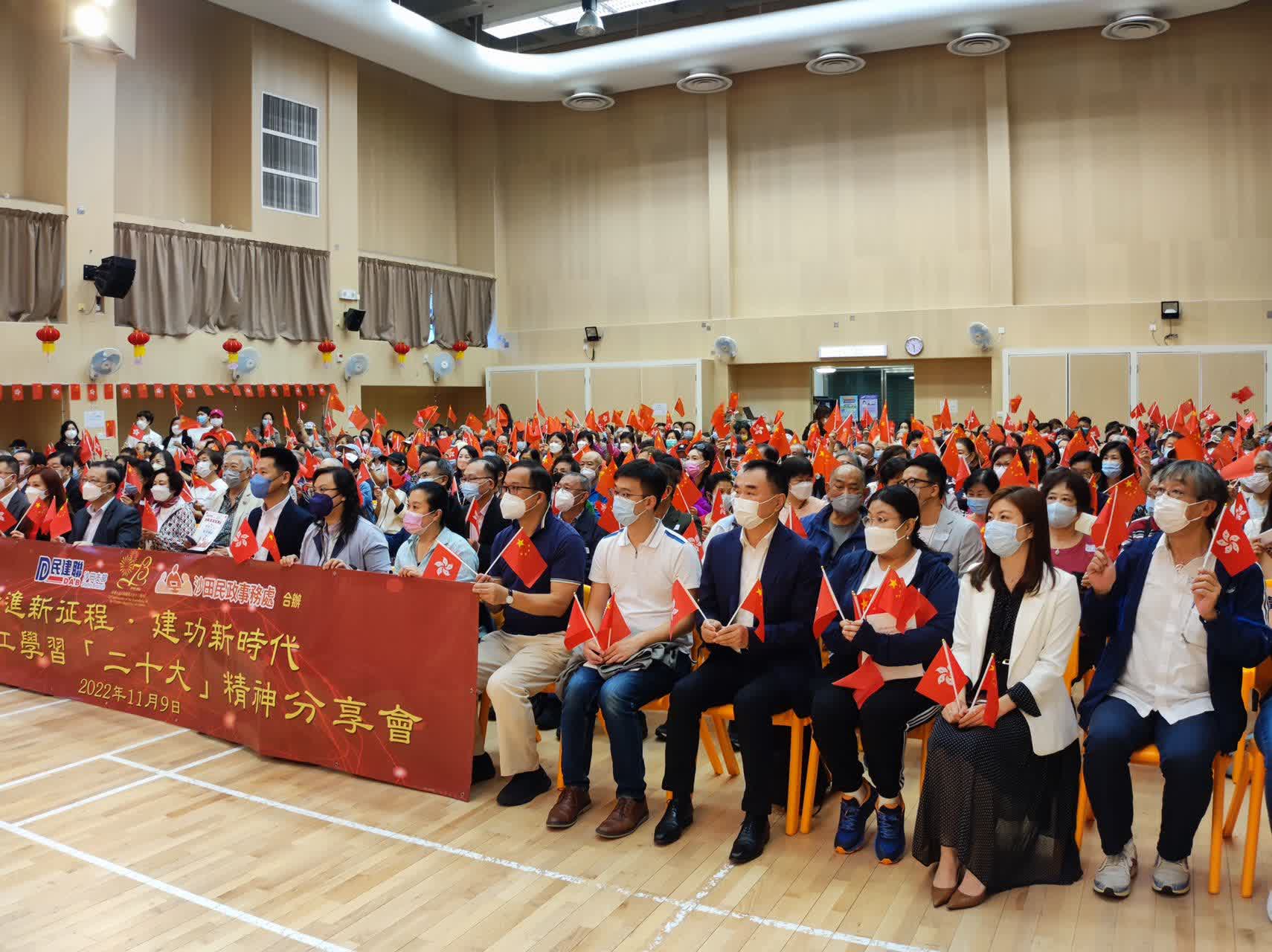 沙田民政事務專員柯家樂表示,沙田民政處會在地區層面貫徹落實二十大精神,讓沙田成為和諧及團結的地區,市民安居樂業。民政處將繼續在地區推動國民教育及青年發展的工作,增強年青人及居民對國家的認同及歸屬感。沙田各界大聯盟鄧開榮主席和民建聯沙田支部祝慶台主席也作出分享,並希望各位義工細心學習領會二十大精神,再深入社區,向身邊的市民朋友宣傳,讓二十大精神在沙田的每一個社區傳播。