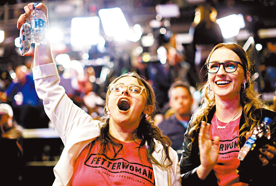 在參院選舉方面,目前民主、共和兩黨各佔50席,共和黨只需進賬一席,便可拿下控制權。然而暫時取得優勢的卻是民主黨,賓夕法尼亞州民主黨候選人費特曼,擊敗獲前總統特朗普力挺的紐約著名醫生兼電視名人奧茲,成功從共和黨手上取得一席。費特曼曾在黨內初選舉行前數天中風,被外界質疑能否應付國會繁重工作,他在勝出後向支持者發言,強調自己保持謙卑態度,竭盡全力為所有人打這場選戰。