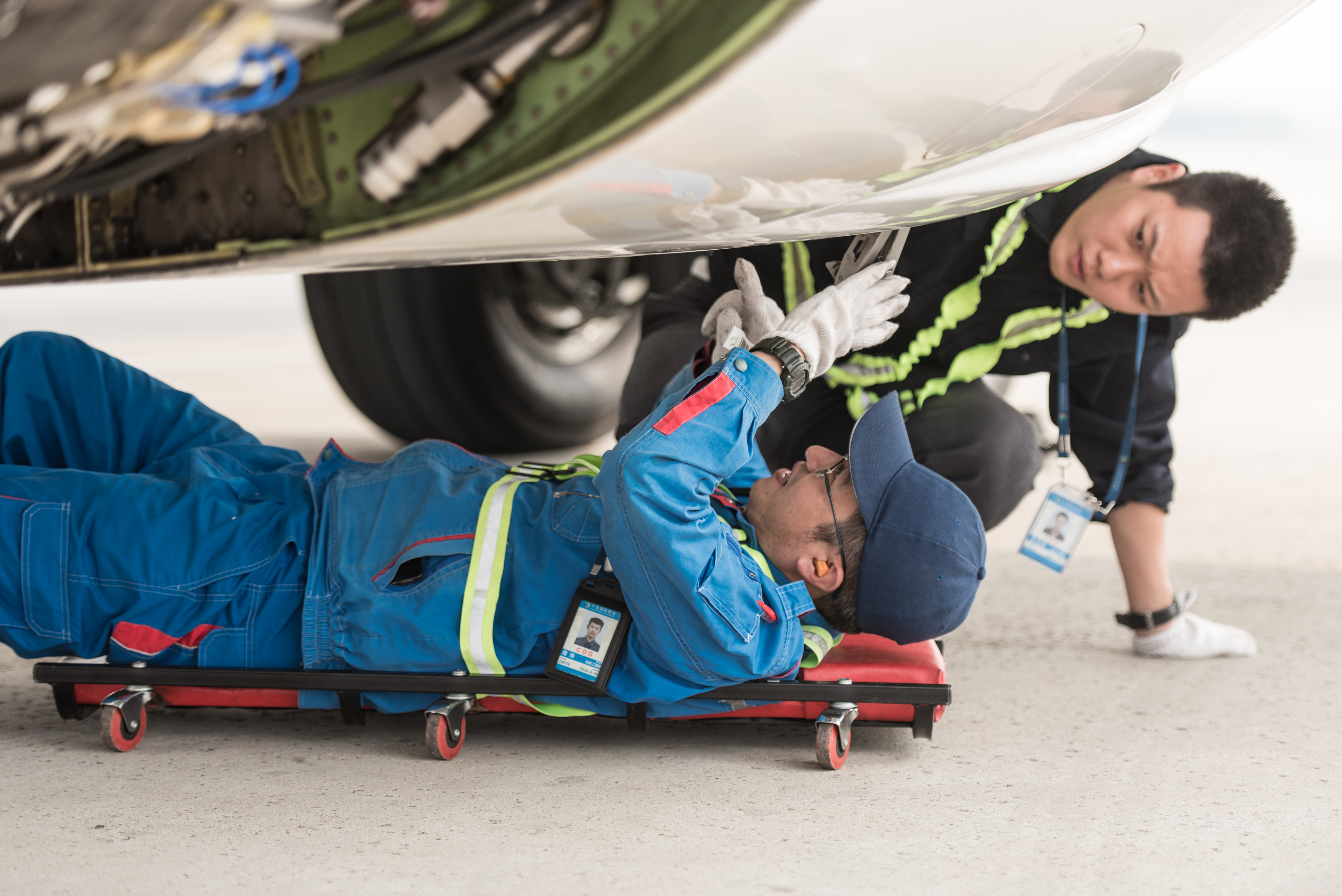 在大連機場,機務維修員大部分從大學機械、電子、航空等專業畢業,要擁有民航維修執照和相應的機型證書,並取得機務工程部考核和崗位資質授權才能從事對應機型的深度維修工作。從一個剛入職的勤務員成長為維修員,再到一名成熟的整機放行人員,起碼需要5年以上的工作經驗並且將學習貫穿始終。