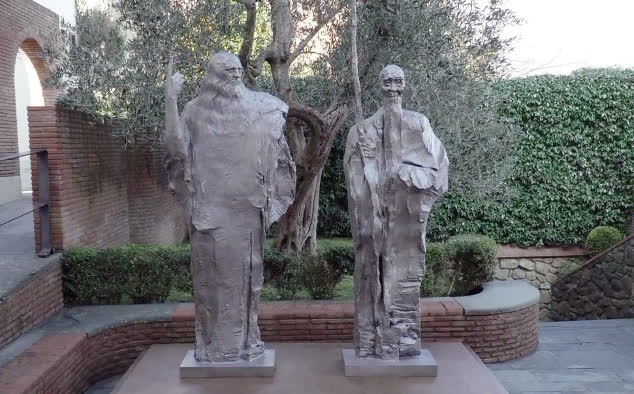 在吳為山的作品中,表現偉人「對話」的又一力作則是被業內津津樂道的《超越時空的對話——達·芬奇與齊白石》。2020年初,這兩尊展現中西文化巨匠的雕塑在意大利達·芬奇博物館揭幕。其中,達·芬奇塑像高2.25米,齊白石塑像高2.1米,加拐杖總高3.5米。創作靈感來自十多年前吳為山在威尼斯旅遊時,幻想超越時空的東西方文化代表,在人類文明長河中共同泛舟的意象。這位雕塑家表示,該作品融合了來自西方文藝復興的寫實傳統與東方文化的寫意精神,向世界表明東西方的文明對話「因為心靈相通,所以永恆」之意。