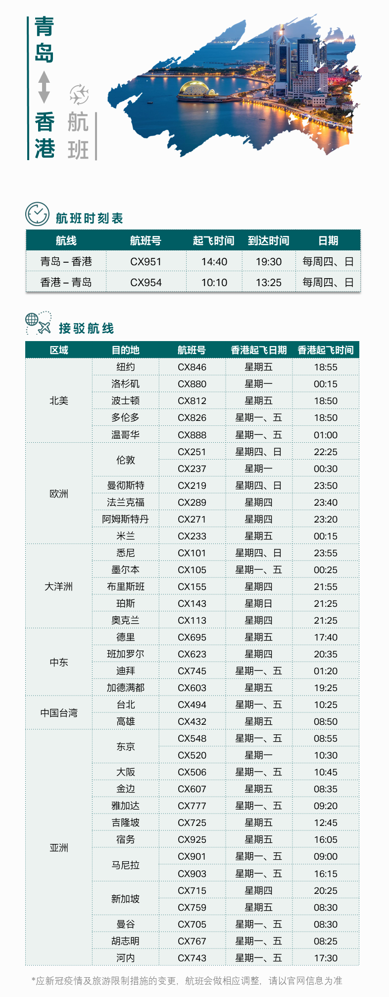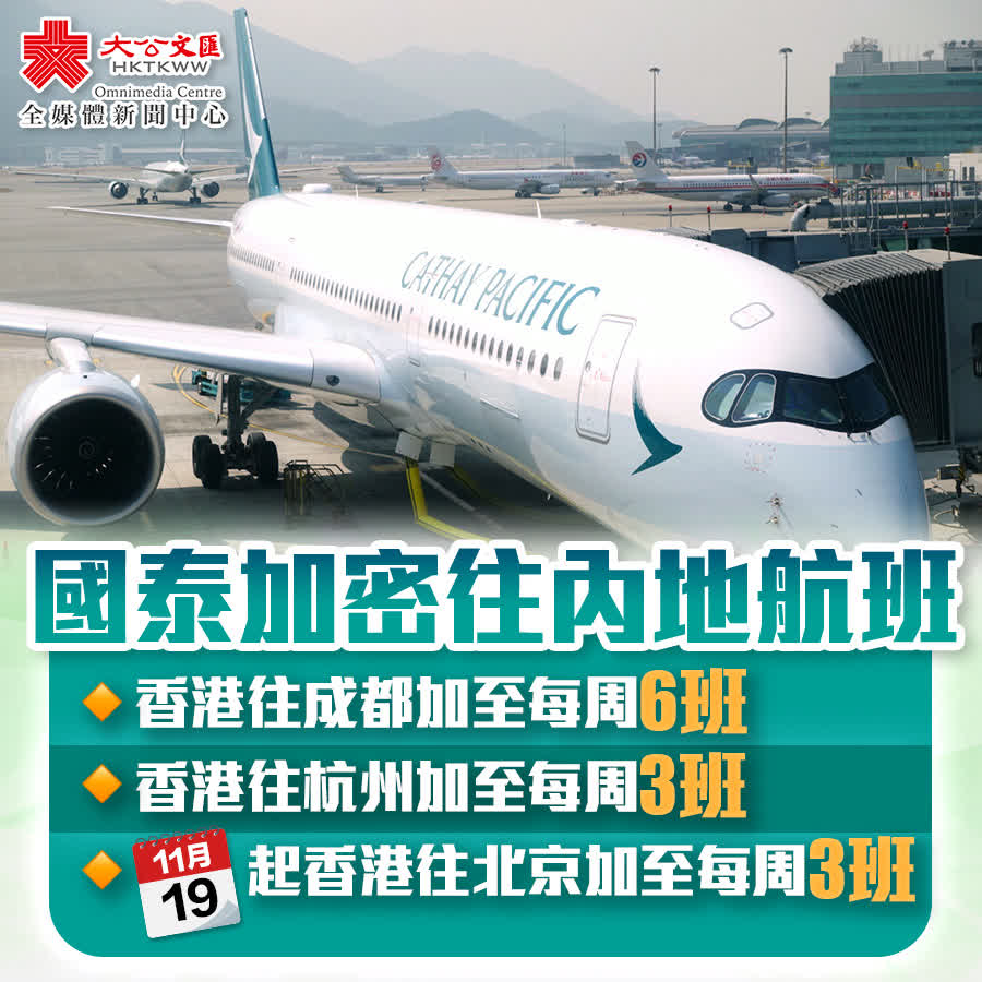 國泰航空陸續增加了多個航班,以滿足內地小夥伴們往返香港或經香港轉機前往其他目的地的出行需求。