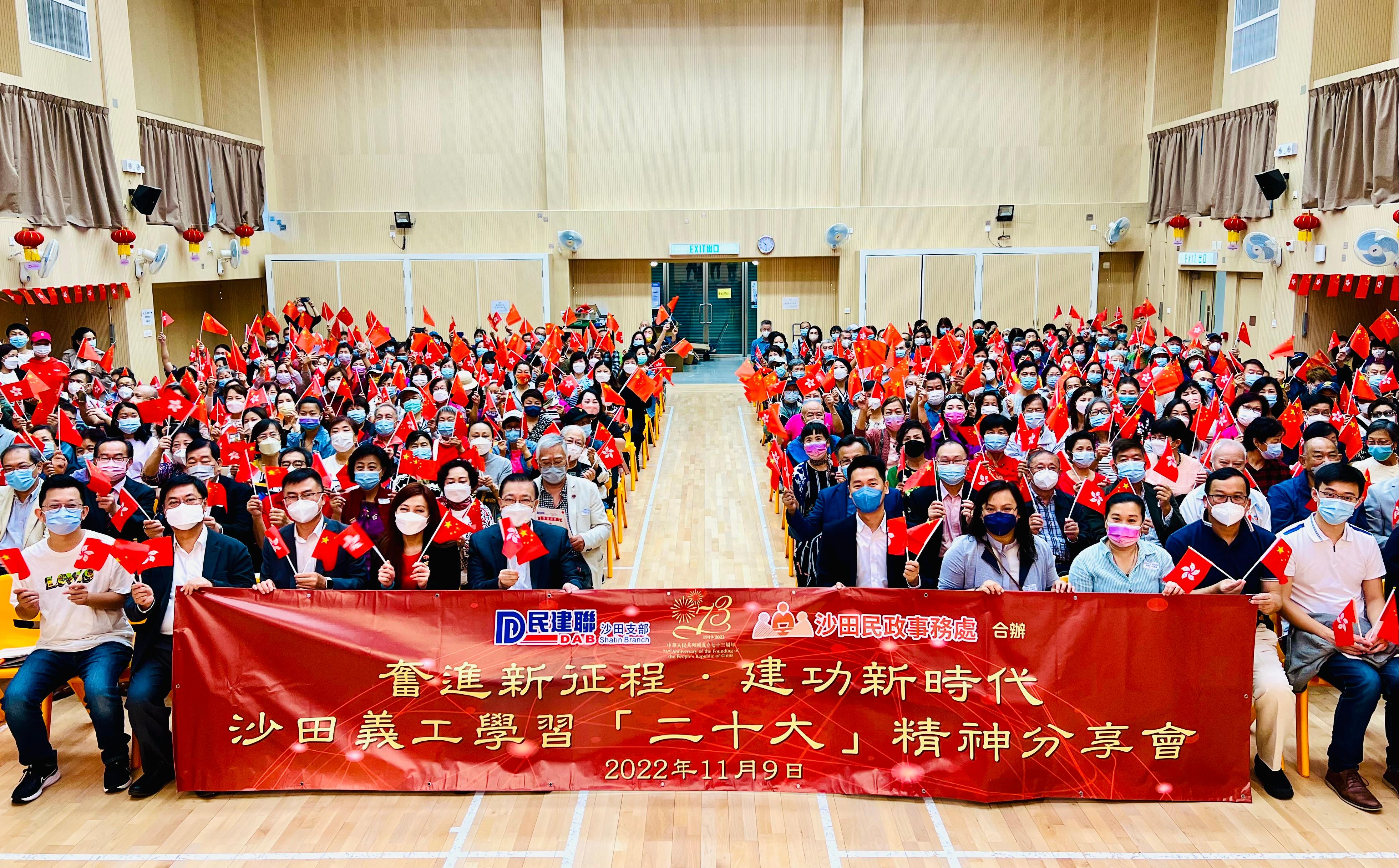 繼10月28日舉辦座談會後,沙田民政事務處於11月9日聯同民建聯沙田支部,在恒安社區中心舉辦「奮進新征程 建功新時代──沙田義工學習『二十大』精神座談分享會」,邀請譚耀宗為主講嘉賓,他指出香港社會各界要團結一致,在二十大精神的指導下實現新篇章,致力維護「一國兩制」行穩致遠。沙田民政事務專員柯家樂亦有在會上發言。約300人出席分享會,與會者包括沙田各界大聯盟主席鄧開荣、民建聯沙田支部主席祝慶台及沙田區的義工領袖。