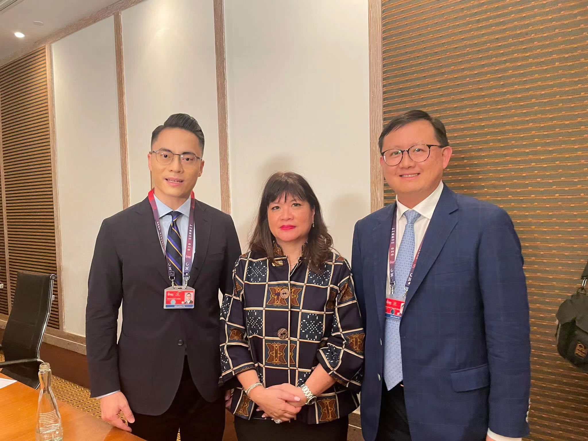 大公文匯全媒體報道,民建聯立法會議員黃英豪及梁熙到印尼峇里參與B20峰會。昨日(12日)與印尼B20峰會主席Shinta Kamdani會面,就兩地民間合作機遇作深入交流。