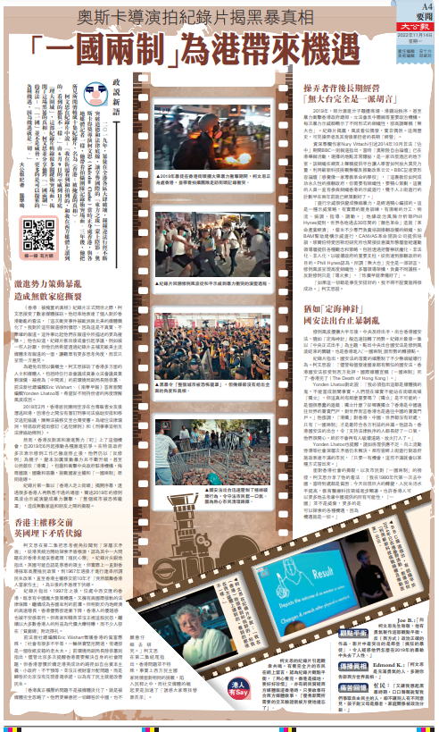 紀錄片指出,國安法的落實的確壓制了不少極端破壞行為。柯文思說:「儘管每個發達國家都有類似的國安法,香港國安法卻受到西方批評,國際媒體宣稱『一國兩制』死了、香港完了(The Death of Hong Kong)。」