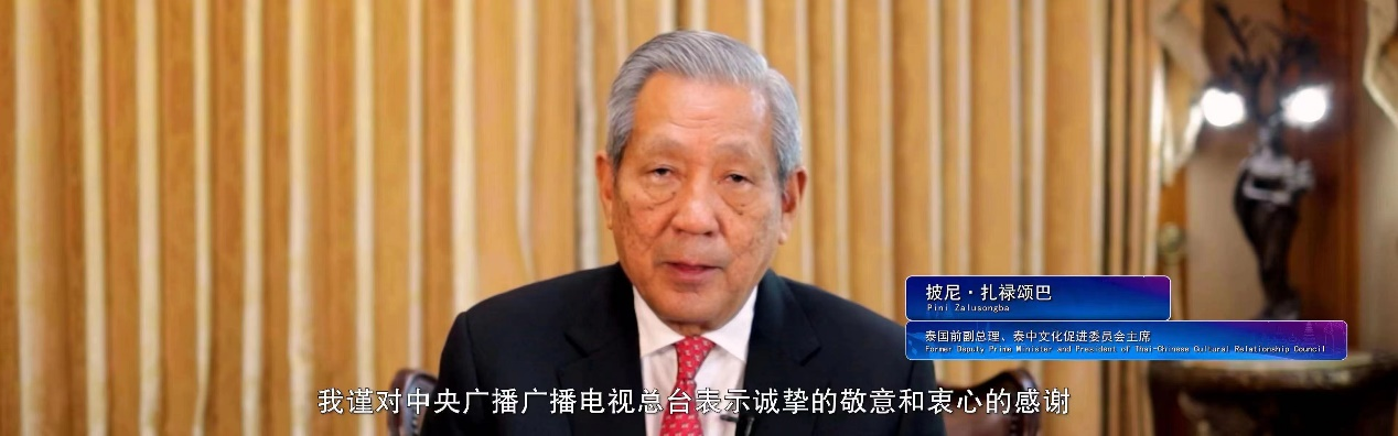 泰國前副總理、泰中文化促進委員會主席披尼在視頻致辭中表示,感謝中央廣播電視總台在促進中泰兩國文明互鑒、民心互通方面做出了積極貢獻,讓我們看到了普通人在中國奮鬥的無限可能。堅信在習近平主席的帶領下,中國將更加繁榮富強,充滿溫暖與希望。希望中央廣播電視總台進一步加強與泰國媒體的合作,為構建中泰命運共同體作出貢獻。