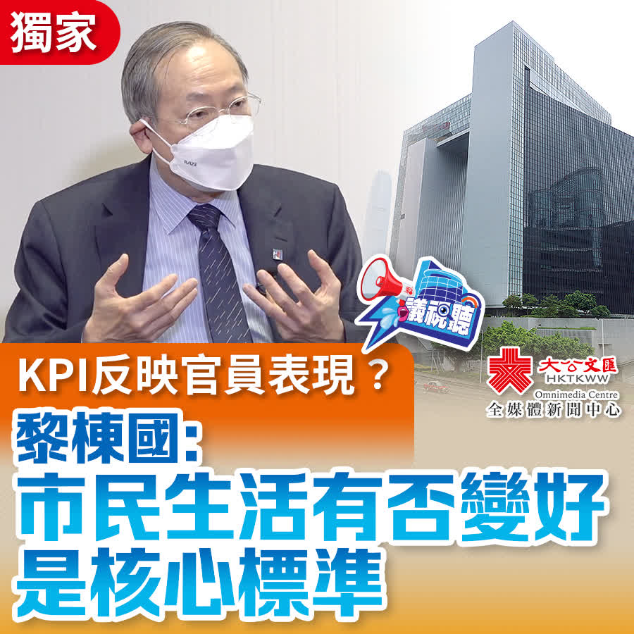 (大公文匯全媒體記者 嚴璐瑤)日前,在立法會會議上,有議員提出質詢,促請特區政府訂立指標評核各司局長表現,政制及內地事務局局長曾國衞表示,現時政治委任官員有《政治委任制度官員守則》規管,且機制行之有效。今日(15日)播出的《議視聽》新一集節目邀請立法會議員林筱魯和黎棟國,談施政報告提出多項績效指標(KPI)能否如實反映官員的表現。