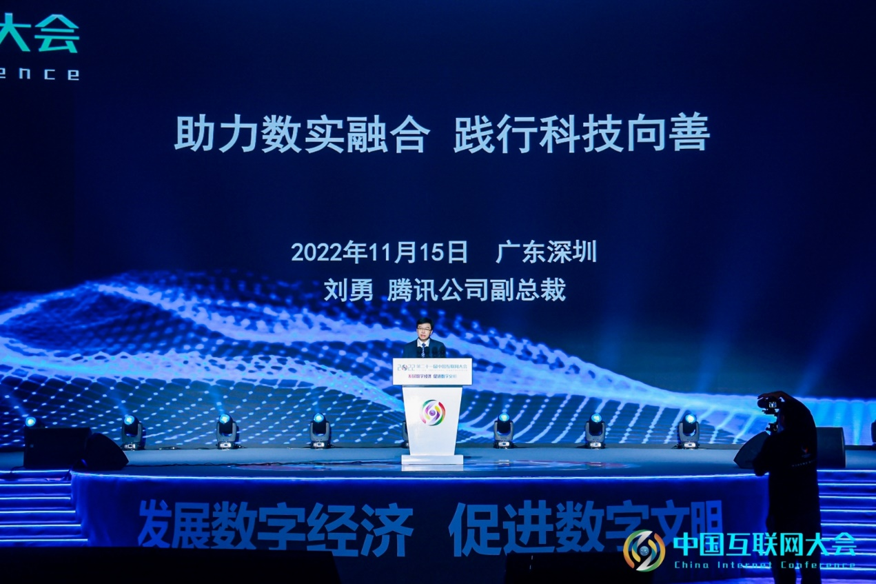 中國互聯網大會現場,騰訊公司副總裁劉勇受邀發言時表示,在中國式現代化的新征程中,持續推進數實融合發展,持續踐行科技向善,既是高質量發展的時代需要,也是數字科技企業的責任所在。「本次大會主題『發展數字經濟,促進數字文明』與騰訊『扎根消費互聯網、擁抱產業互聯網、推動可持續社會價值創新』的新發展戰略不謀而合,騰訊稱之為用戶、產業、社會(CBS)三位一體,更加聚焦用戶價值、科技創新及履行社會責任。」