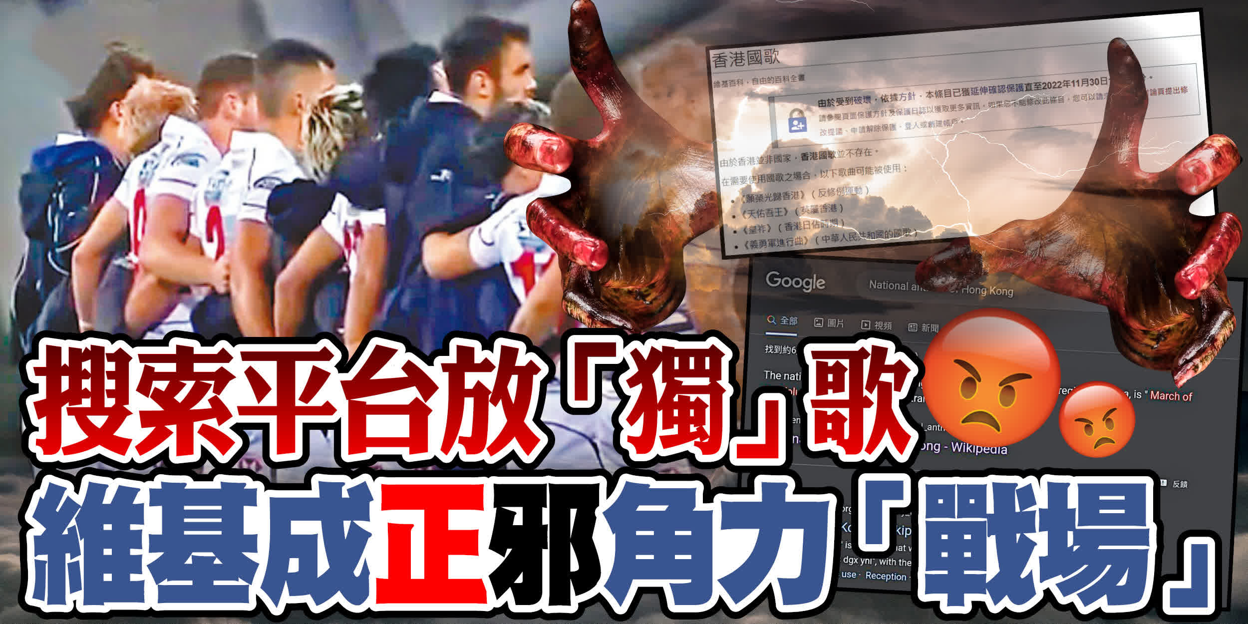 大公文匯全媒體報道,亞洲七欖比賽日前在韓國舉行,主辦方在港隊作賽前播出了「獨」歌。主辦方聲稱,是一名實習生在網上搜索所謂「香港國歌」時,下載了搜索結果的「榜首」導致,令人關注到網上失實資訊氾濫所引發的種種問題。記者昨日在Google、Wikipedia(維基百科)及YouTube等網上平台搜尋關鍵字「香港國歌」或英文「National anthem of Hong Kong」,搜尋結果的首頁前排仍會顯示該「港獨」歌曲的連結及資訊。