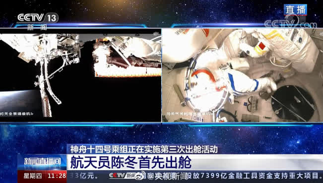 據中國載人工程辦公室消息,神舟十四號乘組今日(17日)進行第三次出艙活動。截至北京時間11時16分,已成功開啟氣閘艙出艙艙門,目前,航天員陳冬已出艙,蔡旭哲即將出艙,航天員劉洋在核心艙內配合支持。