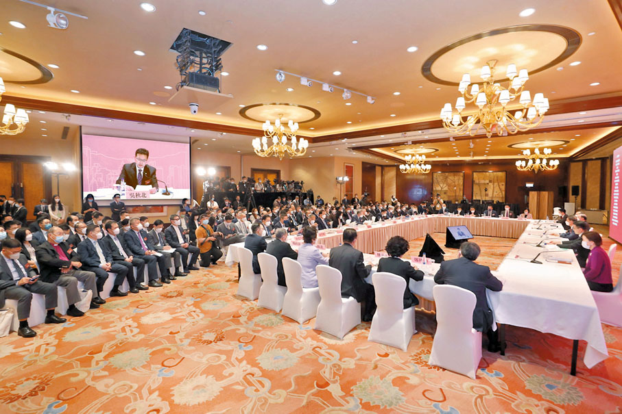 他指出,在「愛國者治港」原則落實後,政團社團要順應社會形勢的新變化新要求,凝聚治理共識、強化治理思維、培育治理人才、鞏固治理基礎;要心懷「國之大者」,不斷加強自身建設,增強凝聚力,擴大影響力,大力弘揚主流價值觀,發揚香港包容共濟、求同存異的優良傳統,擴大團結面,畫出最大同心圓。