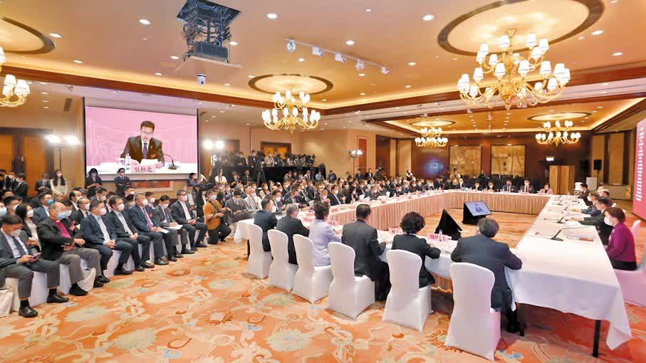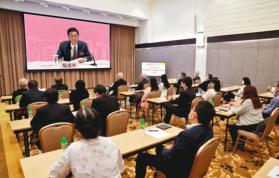 「香港社會各界學習二十大精神分享會」昨日線上線下舉辦,在主會場外,民建聯、工聯會、經民聯、新民黨、自由黨等政團在全港十八區設置分會場,與地區成員與街坊通過視像同步觀看。香港廣東社團總會、香港福建社團聯會、香港廣西社團總會、香港海南社團總會、香港湖南聯誼總會、香港湖北社團總會等26個省級同鄉社團,連同香港島各界聯合會、新界社團聯會等社團亦在港九新界分別設置分會場,廣泛發動鄉親骨幹一同觀看學習並分享對中共二十大精神的體會。