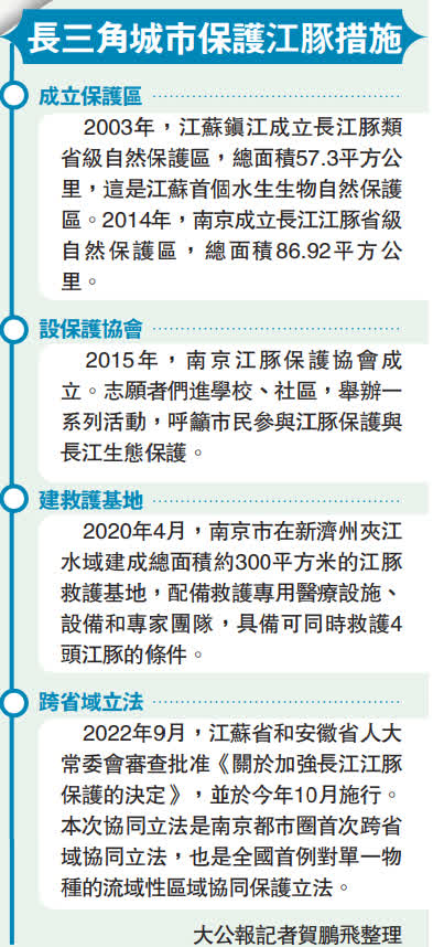 今年9月,由農業農村部組織開展的第4次長江全流域江豚科學考察發現,南京段觀測到的江豚數量明顯增長,已由多年前的十多頭增加至五十多頭。