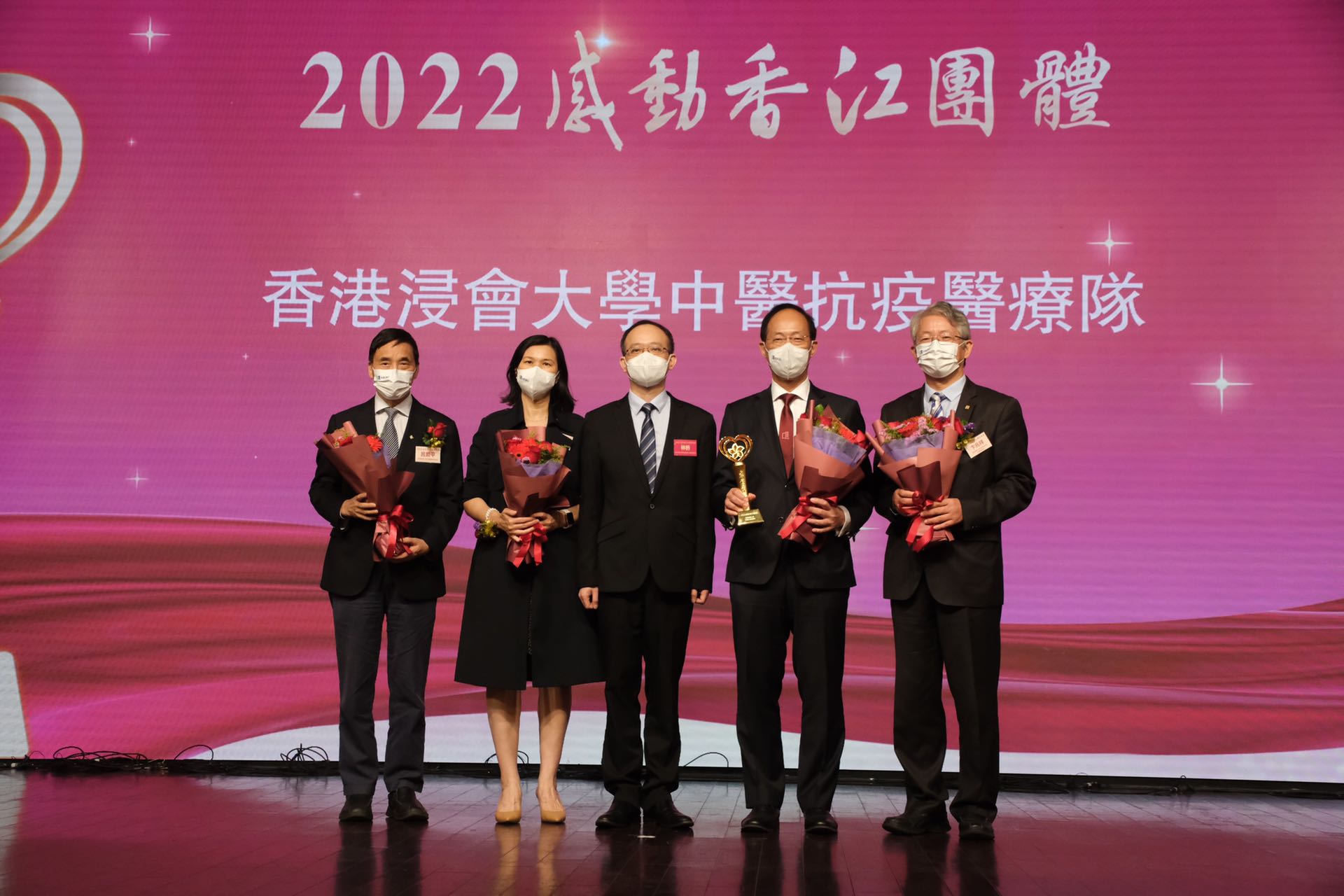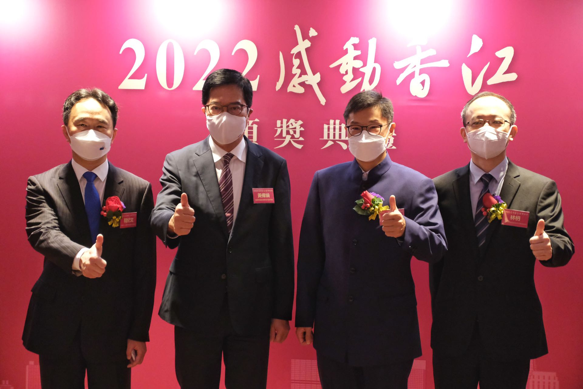 五個「2022感動香江」團體分別是:在第五波疫情最危急之際,全力以赴抗擊疫情、妥善管理隔離設施、保護市民健康安全的香港特別行政區政府保安局抗疫特遣隊;全港首個為確診新冠市民提供網上義診、義藥、送藥上門服務的香港浸會大學中醫抗疫醫療隊;在第五波疫情期間動員近萬名義工參與防疫抗疫工作的全港抗疫義工同盟;首個為國內成骨不全患者提供一站式醫療服務的香港大學深圳醫院成骨不全多學科治療中心;以及歷時三個月穿梭全國六個省份、深入十個曾經深度貧困地區記錄中國脫貧奇跡的紀錄片《無窮之路》主創團隊。
