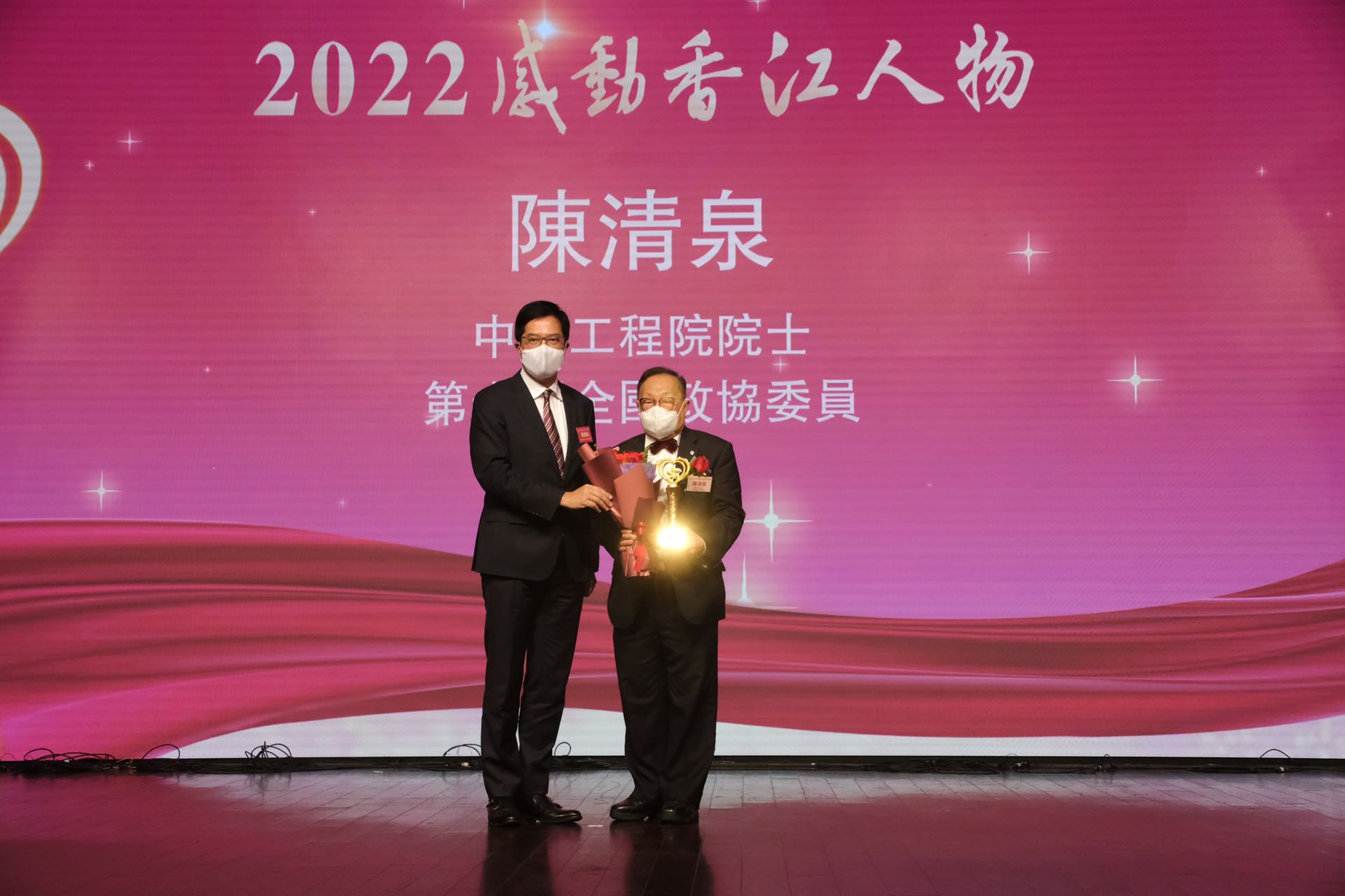 七位「2022感動香江人物」分別是:香港首位中國工程院院士、第十屆全國政協委員陳清泉;為中央援港社區隔離治療設施八個項目快速建造提供重要保障,極大確保建設人員健康和安全的中建國際醫療產業發展有限公司運營總監趙莉莉;傳播尊重法治,講正理、揚正氣、弘正義的全國港澳研究會會員、香港法學交流基金會副主席傅健慈;從事物業管理18年,助人無數的葵涌石籬邨物業總屋宇監督楊瑞蓮;現年七十歲的「捐血王」,香港全血捐血紀錄保持者關錫堯;用理想踐行產業精準幫扶的廣州港華公司精準幫扶項目牽頭人、廣州港華農業科技有限公司總經理梁安莉;以及粵港澳大灣區創業先行者、前海隨身寶(深圳)科技有限公司聯合創始人郭瑋強。