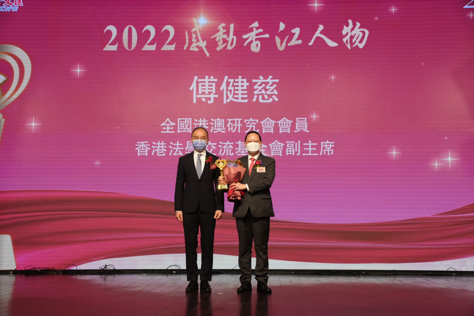 傳播尊重法治,講正理、揚正氣、弘正義的全國港澳研究會會員、香港法學交流基金會副主席傅健慈獲頒「2022感動香江人物」。