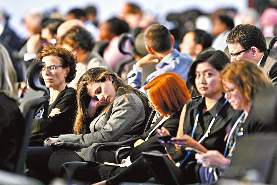 史上第3長氣候峰會 談判超時多人打瞌睡