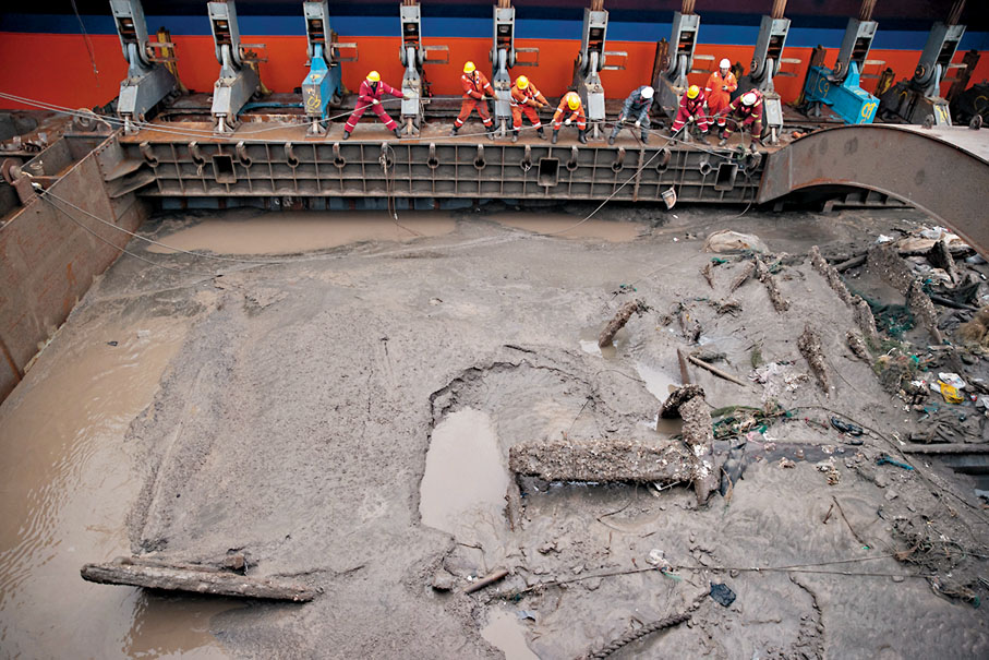 至於如何打撈,更是困難重重。因為長江口泥沙回淤量大,傳統的在古船底下人工打洞並在沉船底部貫穿鋼纜的方案危險且不可行。