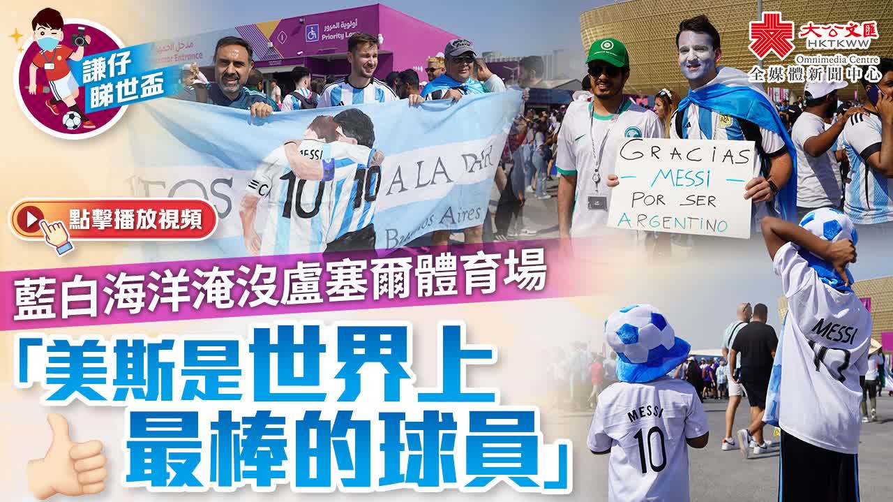 大公文匯全媒體報道:來到第三個比賽日,卡塔爾世界盃彷彿才剛迎戰真正的揭幕戰,阿根廷對沙特阿拉伯的一場小組賽,卻因為美斯的初登場迎來迄今最熱烈的氣氛。在被一片藍白海洋淹沒的盧塞爾體育場之中,舉目皆是來自世界各國的「美斯們」,有印度球迷為唱打氣歌學阿根廷語,亦有球迷拖着斷腿也要親臨現場,只為了向美斯的「最後探戈」送上祝福。