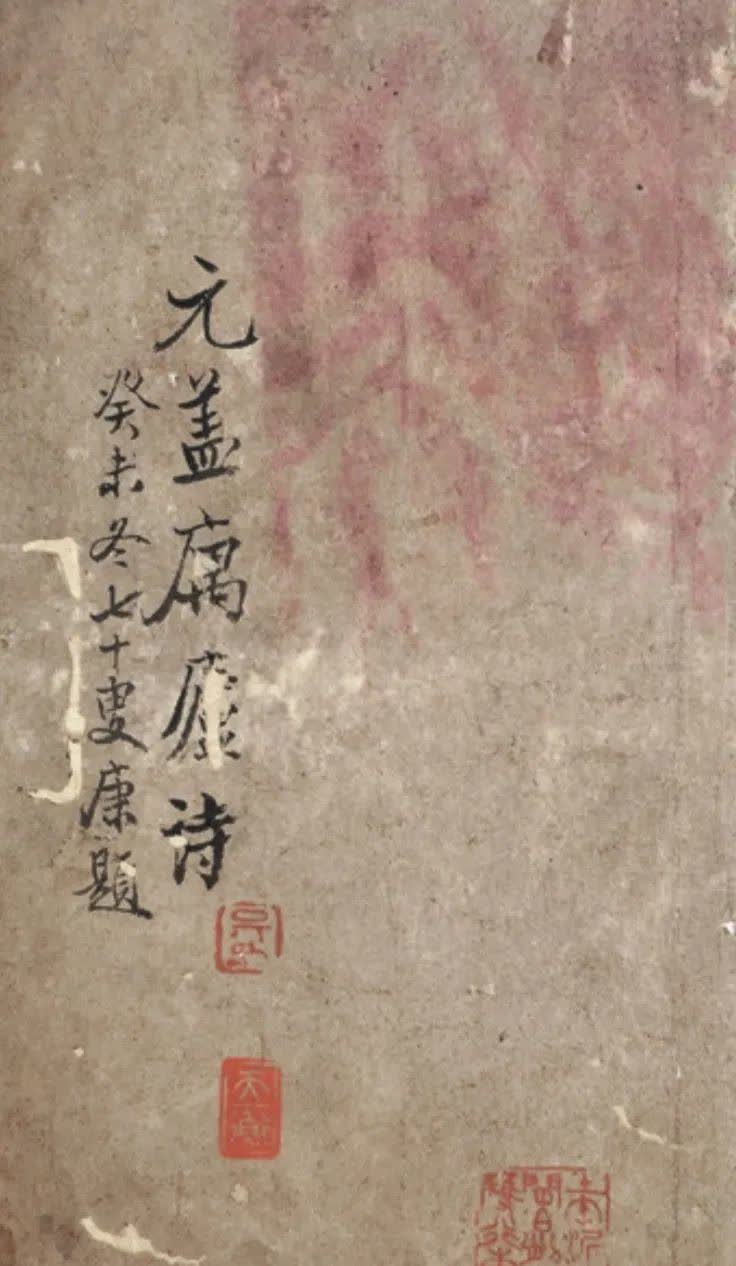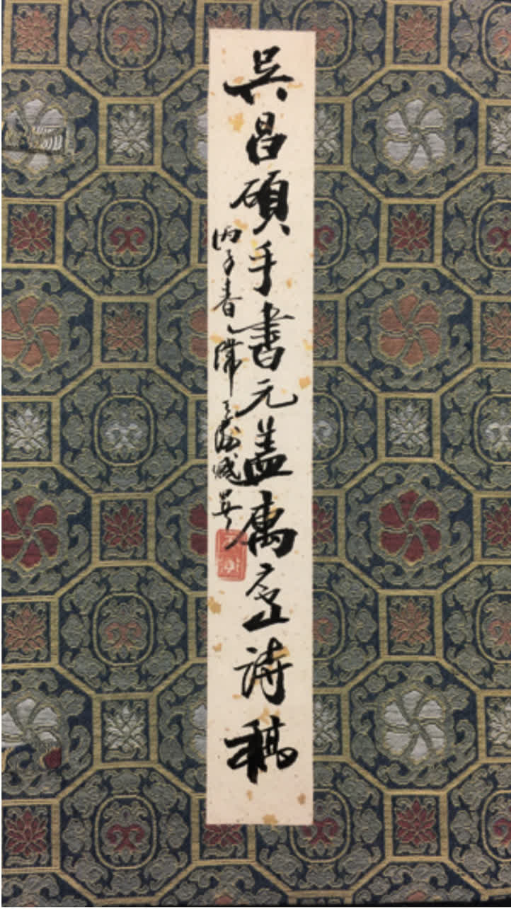 對缶翁的詩稿,我見到過西泠印社藏的暮年稿兩本,他文孫長鄴先生的殘稿,劉漢麟原藏的幾開,日本青山杉雨先生及梅舒適藏的殘頁。此是缶翁壬午至甲申三年裏所作,全冊八十四頁,存詩一百二十四首,不同於未定草的稿本,故署《元蓋寓廬詩存》。元蓋寓廬是 他中年時寄寓蘇州時的一個齋號。其小字法書宗魏鍾繇,洒脫而古茂。冊前有楊峴序及徐康觀款等,後有方還、吳暘、韓熙等跋記。一百多年裏多次倒手轉賣,「文革」時幸運地被發配到上海圖書館,故有館藏印蛻兩,「文革」結束後,落實政策退返藏家,身世曲折。一九九六年得於拍場,當時真不算貴,慶幸。缶翁與我大有緣,他當初使用的晩清香檳式大畫案、高背藤椅(今藏孤山觀樂樓)與我如今使用着的也正巧是一對呢。巧伐!