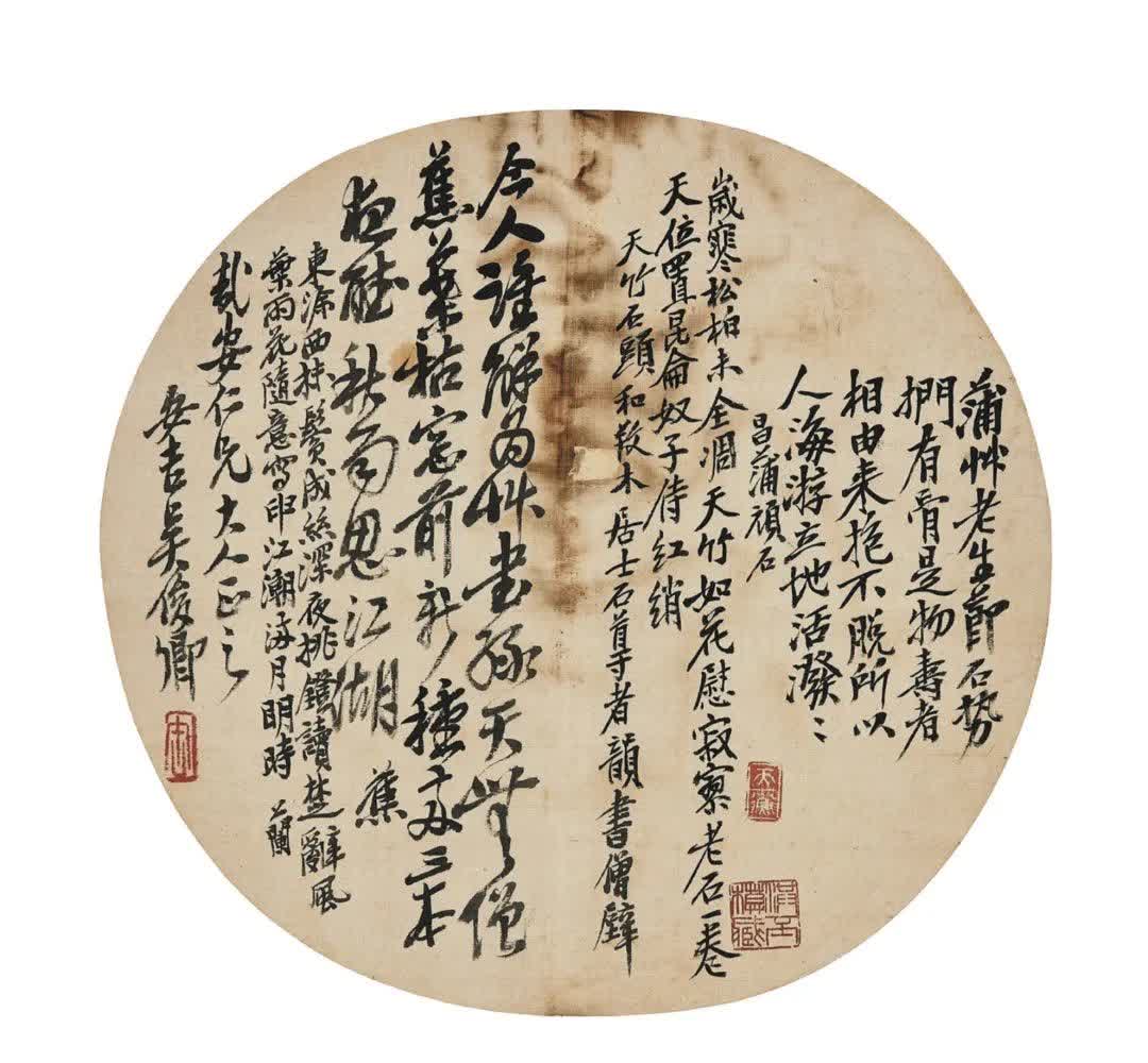 時他已調入華東政法學院任教授,一日,相約去他府上,出示了不少藏品覽賞,其中就有這件吳氏的紈扇。錄自撰詩四首,且楷、行、草兼用,章法也變幻有致。讚嘆之際,他善解人意,說:四千元剛買來,喜歡就拿去。我也就領情易來。記得那天是和兒子無極騎單車去的,知他好古,還取了一件戰國繩紋小陶罐送 他。這是一九九八年的往事了。不幾年,學生告我,他忽地走了,花甲年華,太意外了。我知道這位飽學之士抄錄積累了幾大箱書畫印、醫卜星、文史哲的卡片,他有着龐大宏偉的寫作計劃,夙願未竟,於他於社稷,都是頗大的損失。古人悼念那些才人,總說「豐其才而吝其壽」,丕謨兄怎地就進了這行列呢?真的惋惜哉。