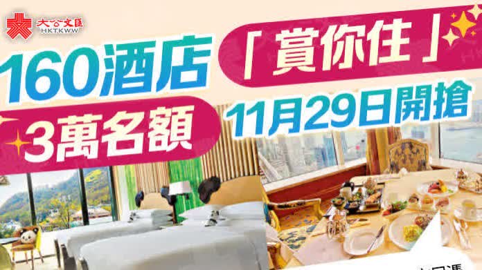 大公文匯全媒體報道,香港旅遊發展局(旅發局)新一輪「賞你住」加碼至3萬名額,今次不僅參與酒店數目達至歷來最多的160間,活動住宿期更橫跨聖誕節及新春,不論一家大細暢玩,還是兩小口度假,也可在香港體驗世界級的酒店服務,享受愉快冬日假期。