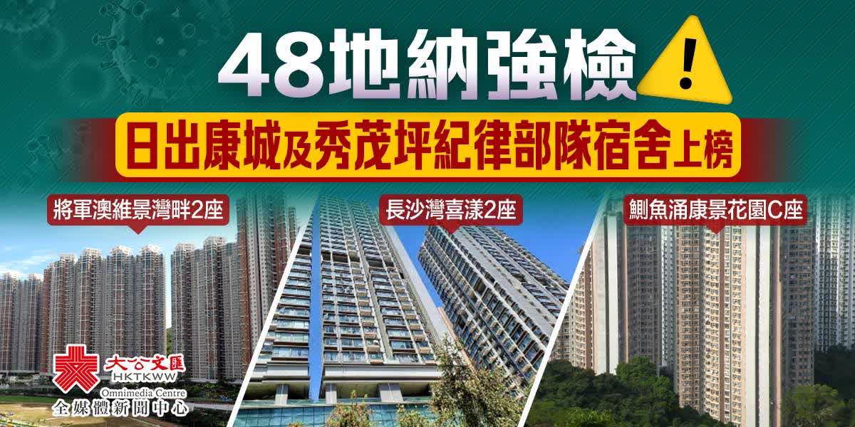 大公文匯全媒體報道,本港第五波疫情持續,今日(23日)新增7985宗確診個案,包括7374宗本地確診個案及611宗輸入個案。政府今晚發出強制檢測公告,要求於指定期間曾身處以下48個指明地方的人士,須在11月24日及25日接受核酸檢測。
