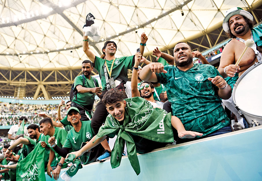 香港文匯報綜合報道,沙特阿拉伯在前日卡塔爾世界盃分組賽爆出驚天大冷門,後來居上擊敗奪標熱門之一的阿根廷,另一支阿拉伯國家球隊突尼斯其後也爆冷賽和奪標黑馬丹麥,戰果令來自中東和北非國家的球迷雀躍不已,齊聲為阿拉伯球隊的出色表現歡呼喝采。東道主卡塔爾國王更罕有地高舉沙特國旗,祝賀沙特取勝。有輿論指出,阿拉伯國家在政治上立場不同,但沙特隊這場勝利,無可否認能令各國團結,彼此拋開政治分歧。
