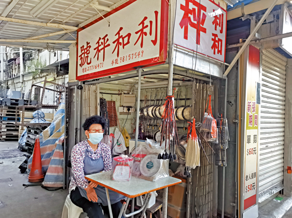 「利和秤號」位於今年宣布活化的油麻地果欄旁橫街,是一間已有90年歷史的木桿秤店。而今,油麻地舊區即將展開重建,果欄擬活化,何太為秤店選擇了文明里休憩花園旁的新址,「我提前在這邊坐一坐,讓街坊習慣一下。」
