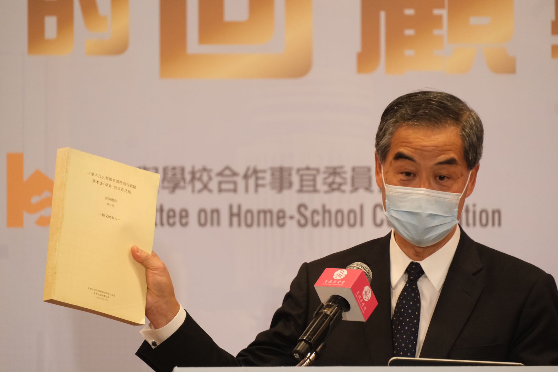 基本法1985年開始起草,在人大常委會下設有基本法起草委員會,其中香港委員佔比三分之一,180名來自各領域各界別的香港居民組成基本法諮詢委員會,當中再選20人組成執行委員會,再選出主任、副主任和秘書長。梁振英於1988至1990年擔任基本法諮詢委員會秘書長,負責兩次香港至今為止耗時最長、耗資最多、規模最大的公眾諮詢活動,他強調1990年頒布的基本法,既不抽離歷史背景,亦不違背香港社會民意。