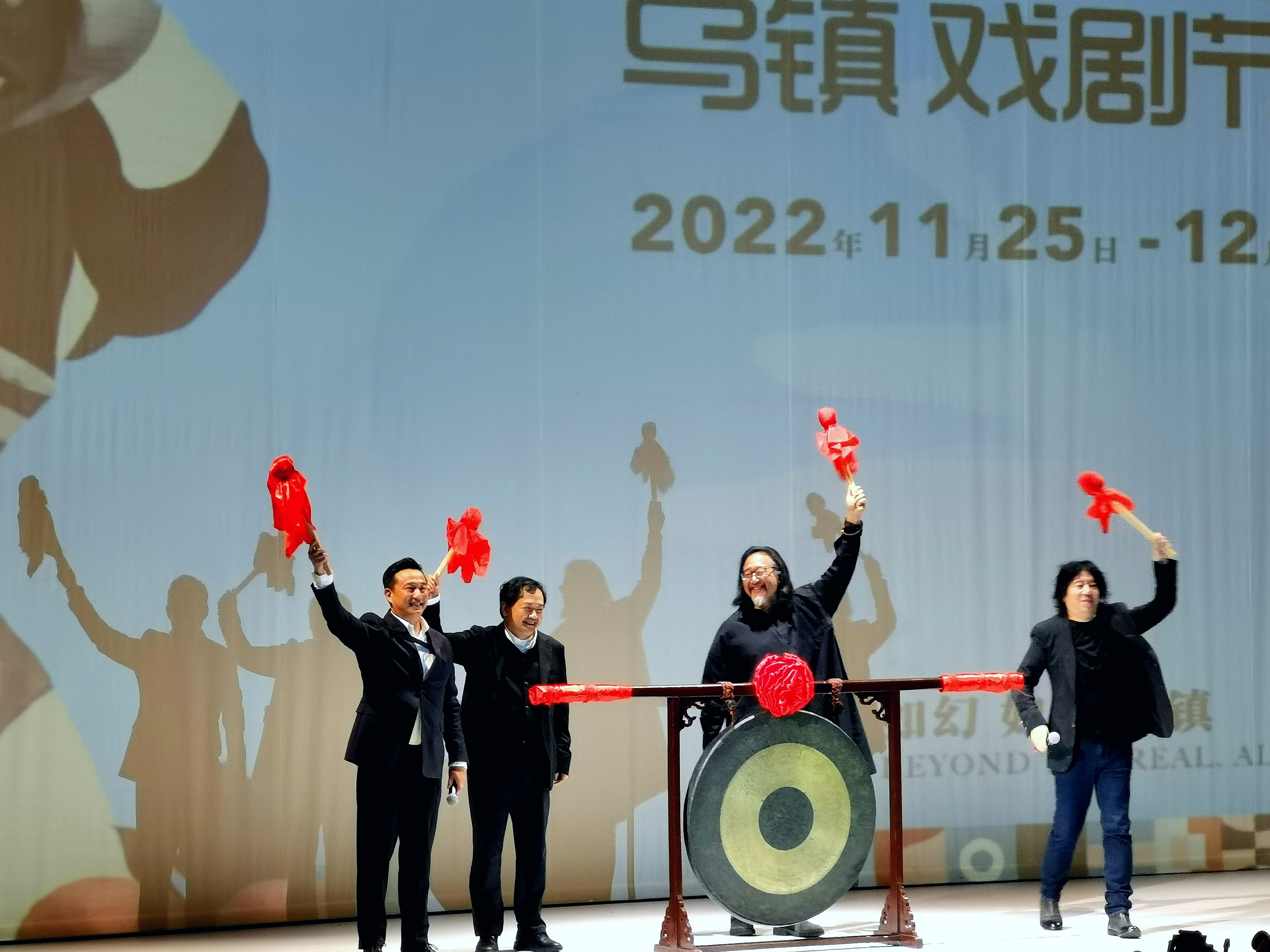 (大公文匯網記者 茅建興 烏鎮報道)11月25日,第九屆烏鎮戲劇節迎冬而至。19時30分,在烏鎮大劇院內,烏鎮戲劇節發起人陳向宏、黃磊、賴聲川、孟京輝一起敲響開幕大鑼,由孟京輝導演、陳明昊、梅婷、黃湘麗領銜主演的《第七天》作為開幕大戲,正式拉開了第九屆烏鎮戲劇節的序幕。