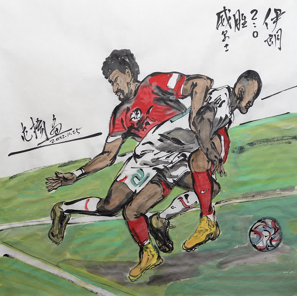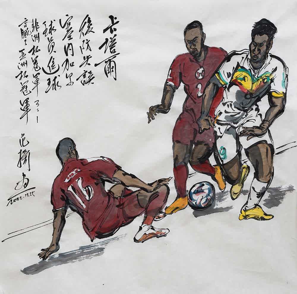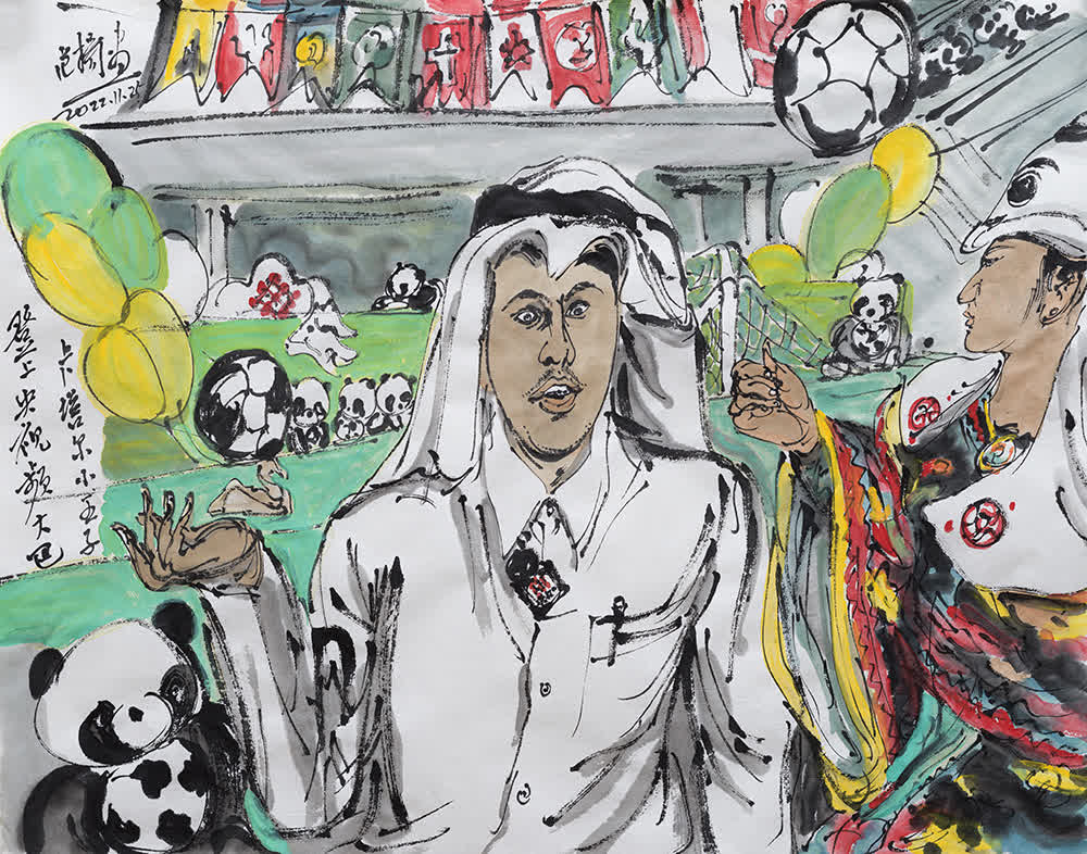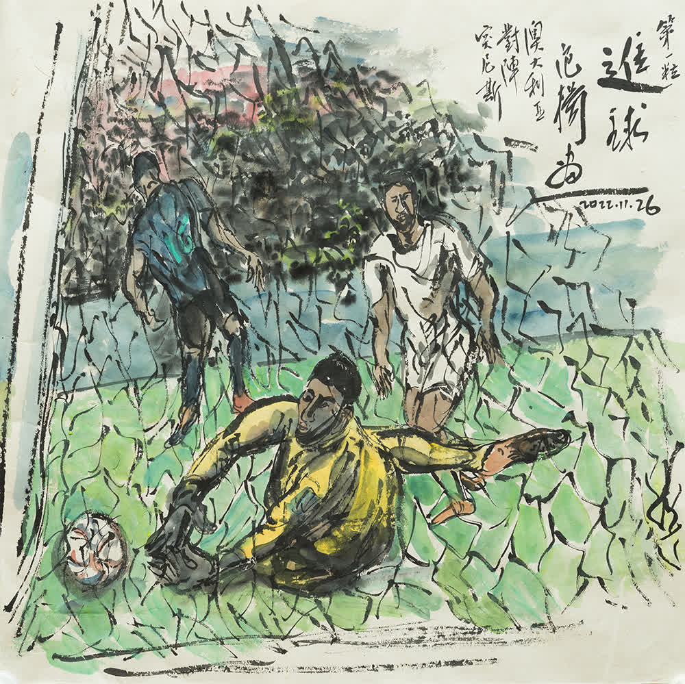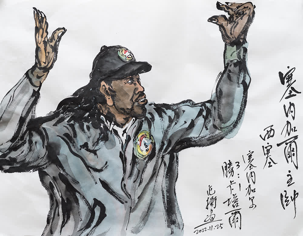 過人、進球、「麒麟臂」、小王子……卡塔爾世界盃足球賽驚喜勁爆,范揚先生的畫筆精彩紛呈,令人目不暇接。