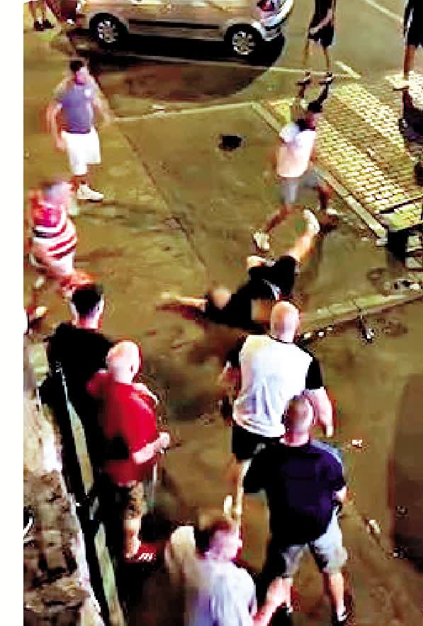 Twitter流傳的視頻畫面顯示,數十人身穿英格蘭隊或威爾士隊的球衣,在名為Revolution的酒吧外鬥毆,有的揮拳打向對方,有的用腳互踹,有的躺在地上纏鬥,更有甚者,抄起椅子向對方頭部砸去,街頭一片混亂。西班牙媒體報道,事件中有數人受傷,警方已介入調查。