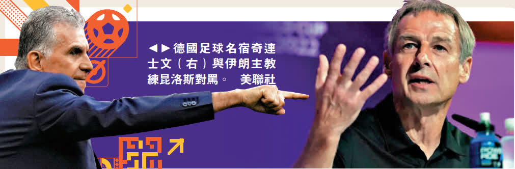 大公報綜合美聯社、法新社報道:世界盃場外口水戰持續,伊朗隊25日戰勝威爾士隊後,英媒請來德國足球名宿、有「金色轟炸機」之稱的奇連士文點評伊朗隊的表現。奇連士文指責伊朗隊在比賽中出陰招恐嚇裁判,伊朗隊主教練昆洛斯反擊稱奇連士文是「足球界恥辱」,要求對方道歉。