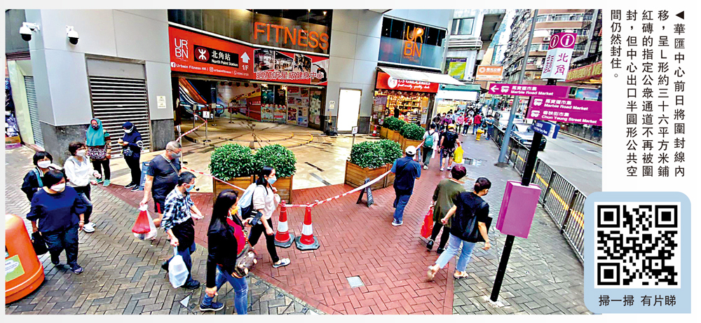 《大公報》早前收到市民投訴,指北角馬寶道華匯中心每逢周末,都會圍封中心出口(也是港鐵站出口)的公共空間,令行人路面積大減,嚴重阻礙通行。本月初起,《大公報》以專題系列報道跟進,並翻查公開資料,發現該中心圍封範圍,包括不能阻塞的公眾通道等公共空間共1551平方米。前日(27日),華匯中心將圍封線稍為內移至半圓形廣場範圍外,呈L形的約36.248平方米紅磚地不再被圍封,行人路暢通情況比以往稍有改善。