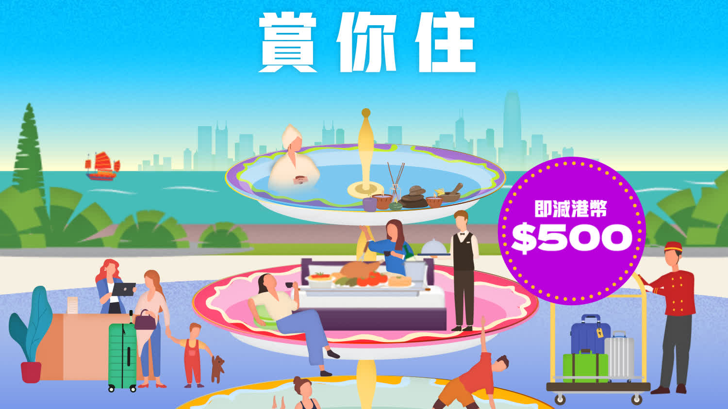於本地零售及餐飲實體店舖消費滿港幣800元,並儲起單據正本的市民,在選定住宿計劃後,今天起以推廣碼「HKstay」,透過酒店提供的指定方法,即酒店電郵或網站,直接向參與酒店預訂價值港幣500元或以上的一晚或連續兩晚住宿計劃,酒店確認預訂成功後,市民即獲港幣500元的酒店住宿折扣優惠。各間酒店的「賞你住」名額有限,先到先得。個別酒店住宿計劃設有不適用期,詳情請留意酒店官方網站。