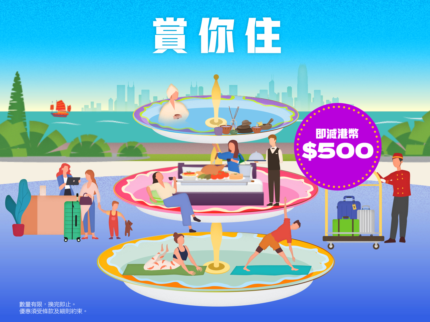 - 港幣500元或以上(連加一服務費)的過夜住宿計劃,最多連續兩晚