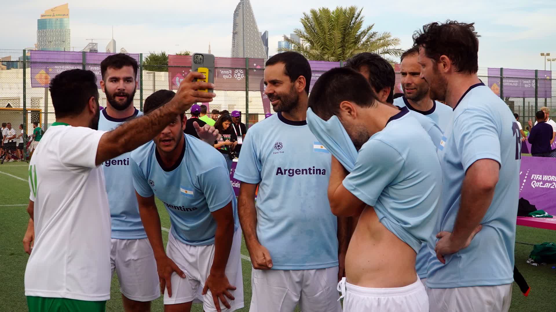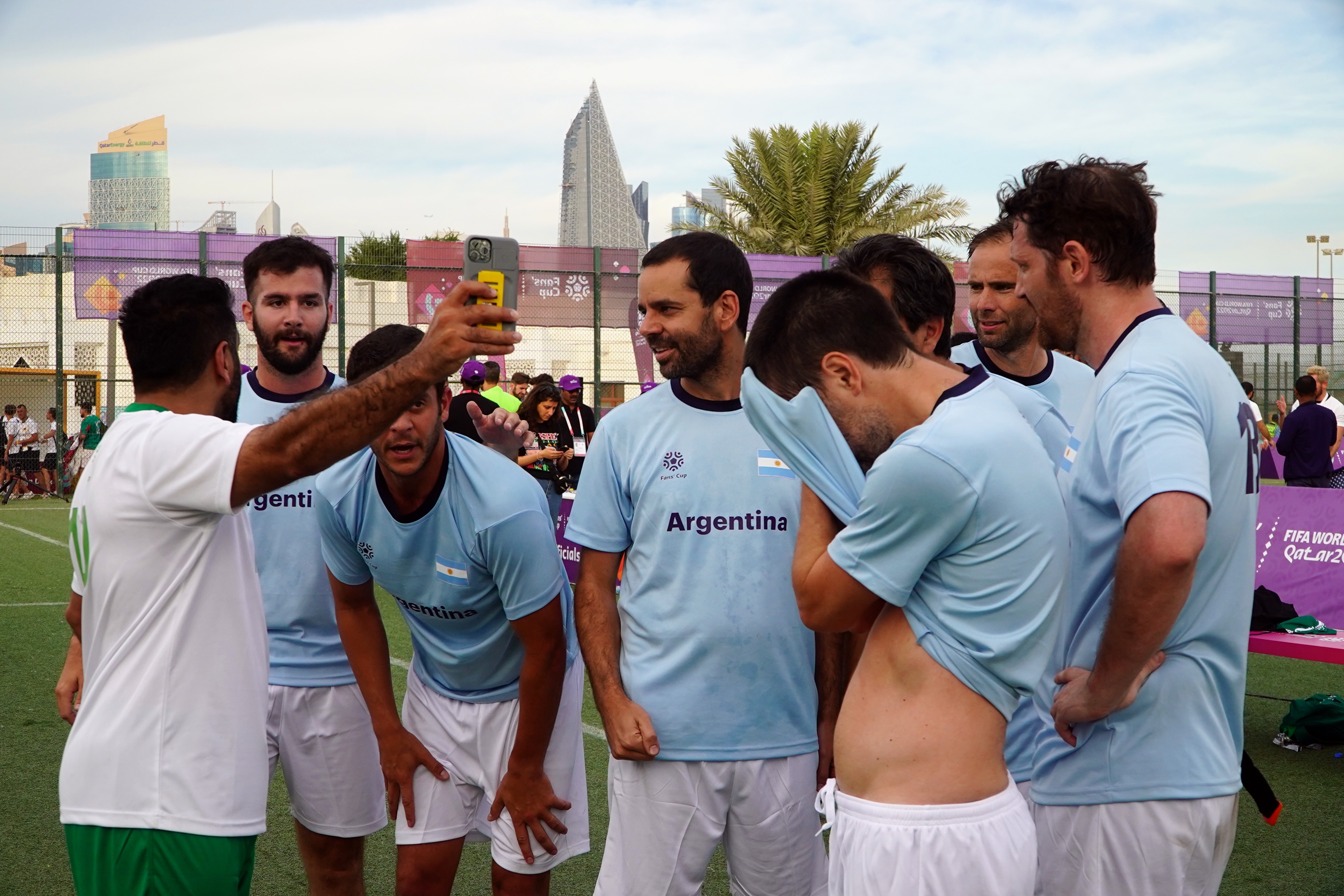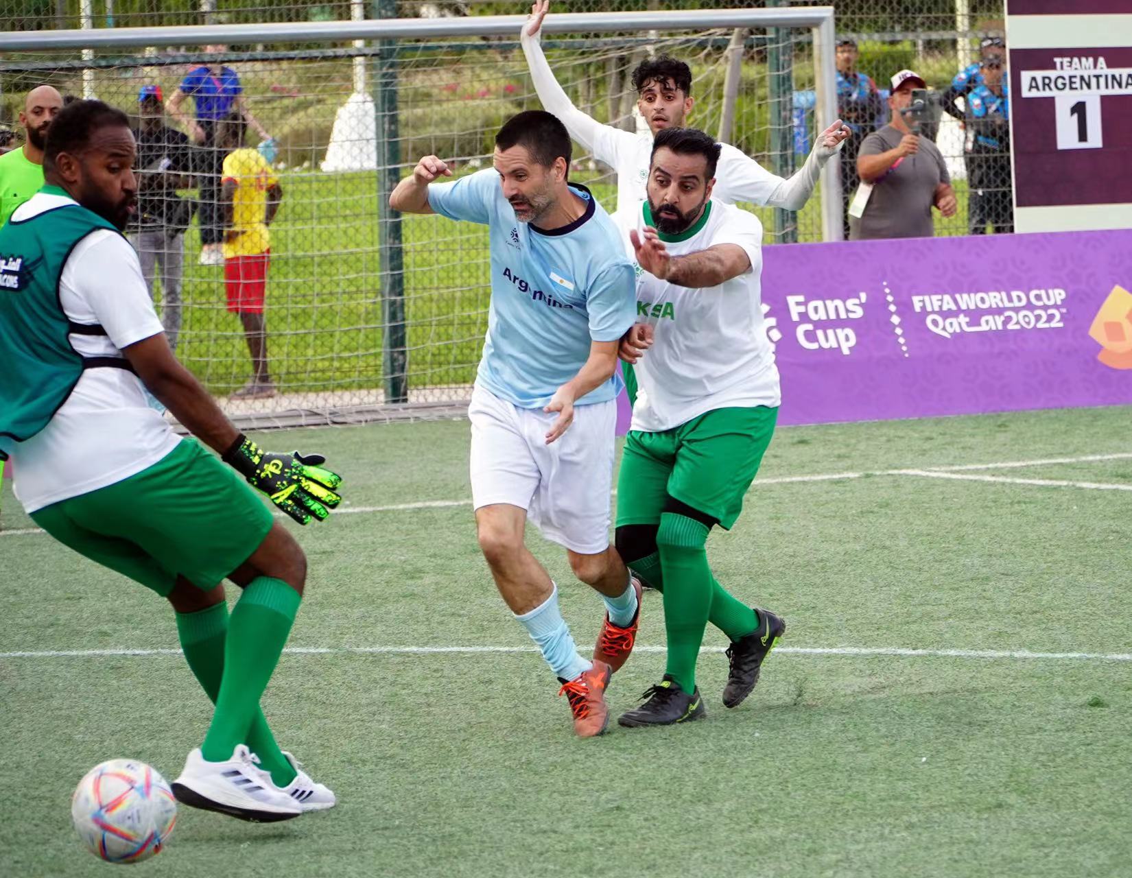 至於與三五知己一起來欣賞世界盃的球迷,更可以自組球隊出戰球迷版世界盃,一嚐為國爭光的滋味,一旦愛隊在世界盃真正賽場被「欺負」,更可以在球迷版還以顏色,阿根廷球迷隊就以2:1反勝沙特阿拉伯,成功為偶像美斯雪恥,本職為工程師的馬捷迪笑言自己落場才知道世界盃球星們有多辛苦:「卡塔爾下午的天氣實在太熱,本來我也不滿國家隊的表現,現在知道在這裏比賽有多難了。」即使只是球迷版世界盃,不過一眾球迷隊比賽態度亦非常認真經常埋身肉搏,不過就算場上寸土必爭,比賽完結還是會「老友鬼鬼」一起開心自拍,馬捷迪表示參加這個賽事將成為他寶貴的回憶:「能夠和世界各地的球迷以足球交流,真是太棒的體驗,這將是我一生難忘的回憶。」