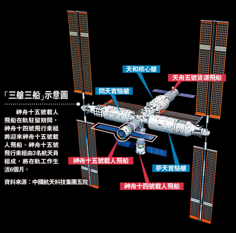 3名航天員目前已抵達中國空間站,與神舟十四號航天員陳冬、劉洋、蔡旭哲相聚太空。中國首次實現了空間站6個型號艙段組合體結構和6名航天員在軌駐留的「太空會師」。後續,他們將共同在空間站工作生活約5天時間,完成各項既定任務和交接工作。
