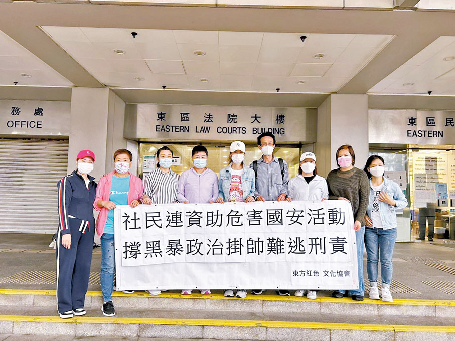 此前,東方紅色文化協會亦於本月22日到東區法院舉行集會,高呼「社民連資助危害國安活動 撐黑暴政治掛帥難逃刑責」等口號,要求查處「社民連」從事或資助危害國家安全活動,並強調違反國安法的行徑要被追責,同時提醒廣大市民捐款給「社民連」成員或同屬違法,切勿以身試法。