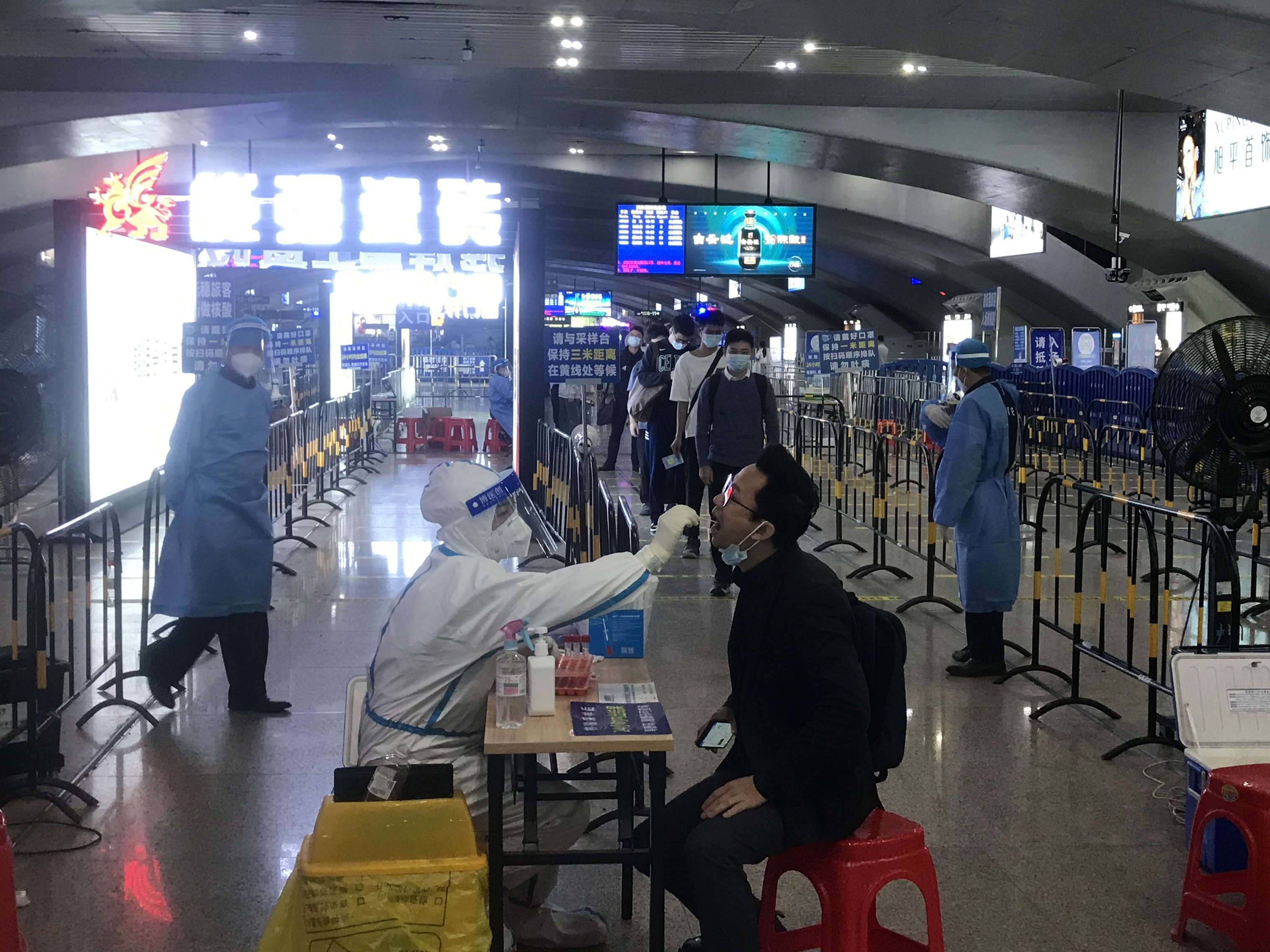 前往廣州南站的旅客越來越多,其中部分旅客健康碼等不符合進站條件。上午,廣州南站發布通知,路部門對進站乘車的旅客嚴格落實100%查驗48小時內核酸陰性證明、100%體溫檢測、100%健康碼綠碼亮碼通行。去往北京方向的旅客還需出示「北京健康寶」和二次查驗48小時內核酸檢測證明。對不符合條件的旅客,不得進站乘車。