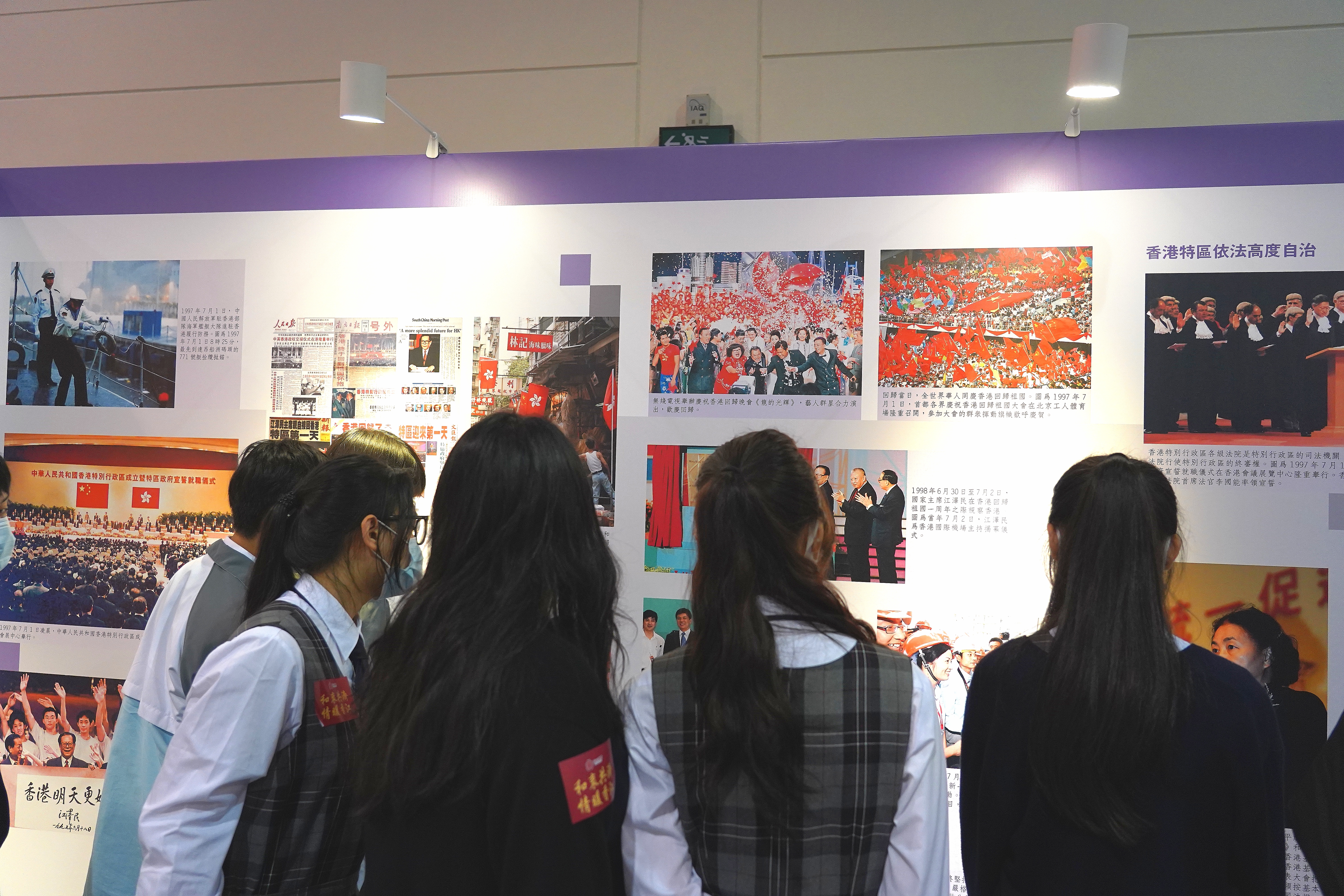 香港布廠商會朱石麟中學李嘉利老師表示,今日帶學生參觀展覽是一次很特別的活動,有別於往日學校課程,能夠讓學生親臨現場更加真實地感受和了解到國家與香港的淵源。李老師指,學校特別設立「成長課」,針對中一至中六學生教授不同內容,包括香港國安法、基本法等元素。12月4日是國家憲法日,學校在昨天為學生們播放國家憲法相關內容的短片,用通俗易懂的語言,輔以問答比賽等豐富多彩的活動,讓學生更好地認識和了解國家與香港。