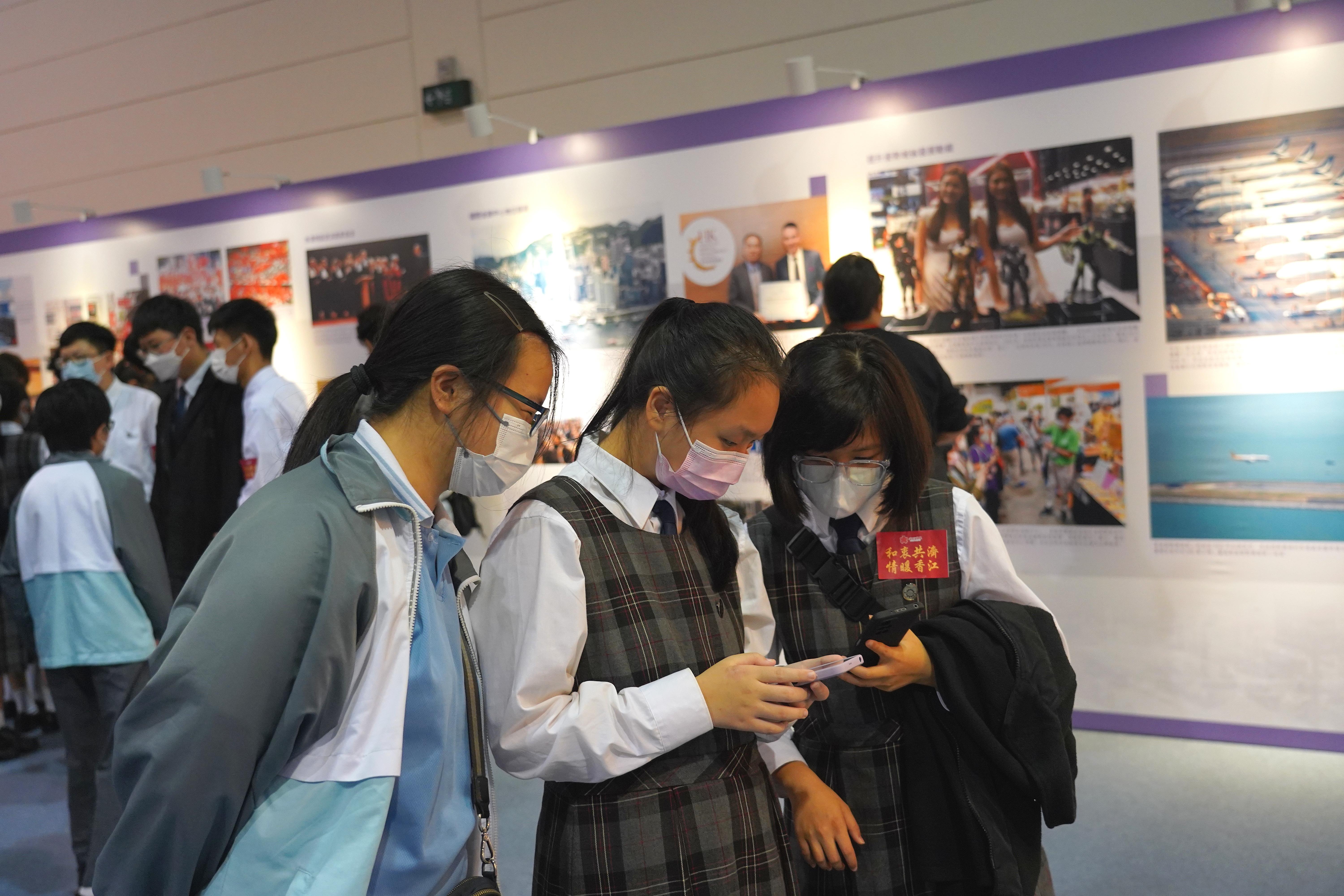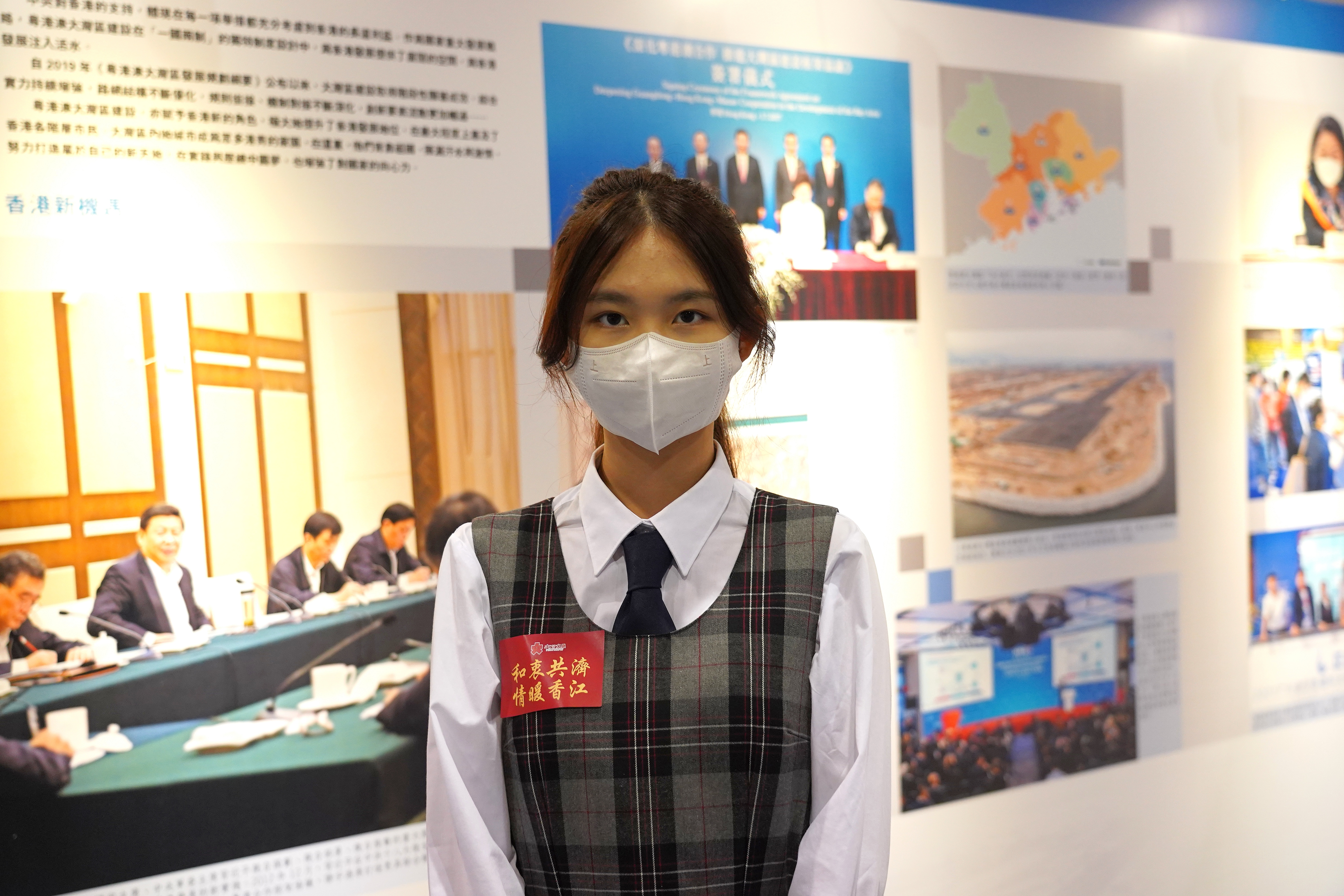 學生鄭紫茵是新移民,認為參觀展覽有助於加深她對香港的了解。她對記者表示,來到香港之後發現這是一座開放包容的城市,學校也很尊重學生的意願。2021年來香港後,她親身經歷第五波疫情物資短缺的情況,但隨着政府的努力,情況不斷改善,強調這離不開國家對香港的厚愛,祖國是香港的母親,血濃於水、密不可分。
