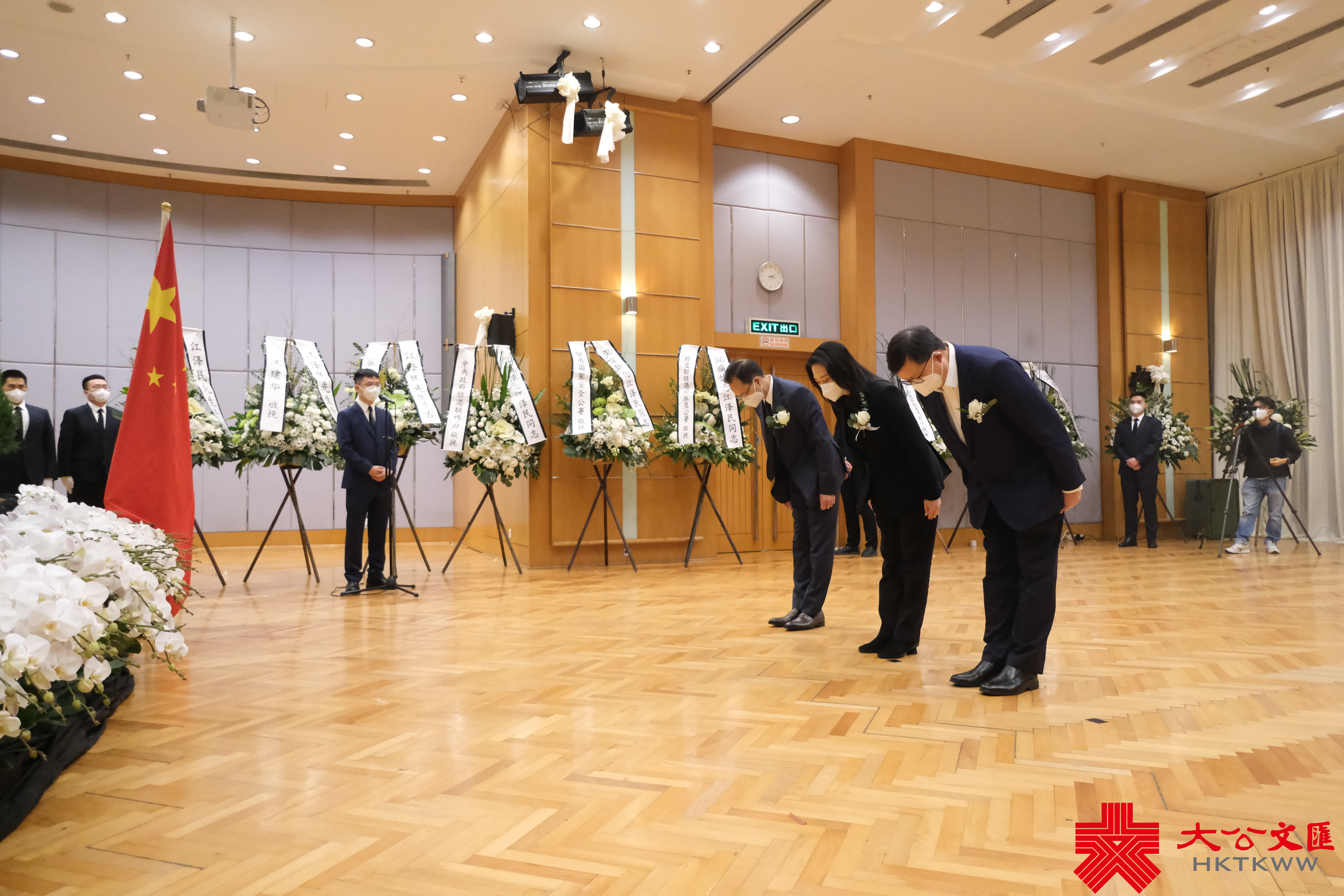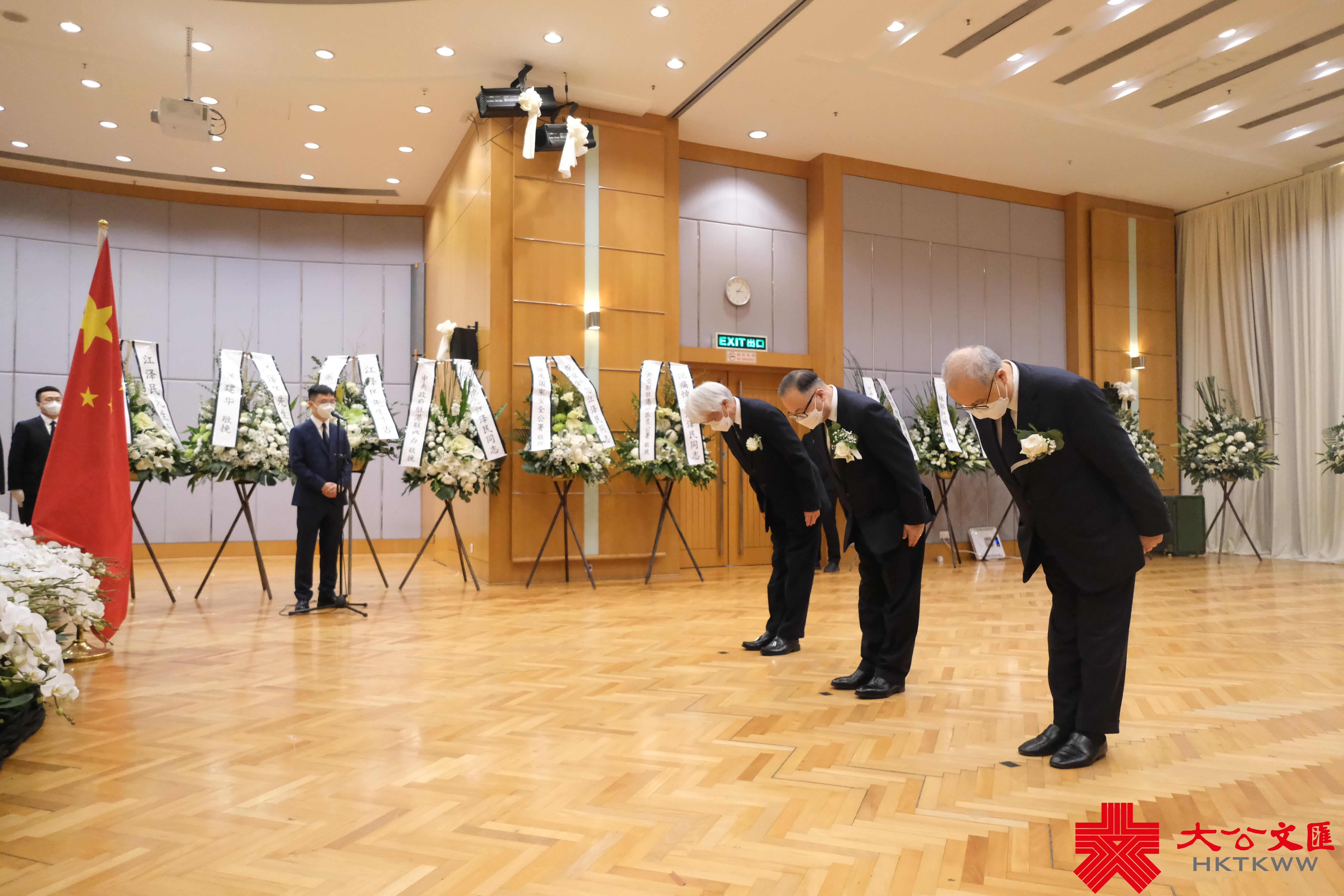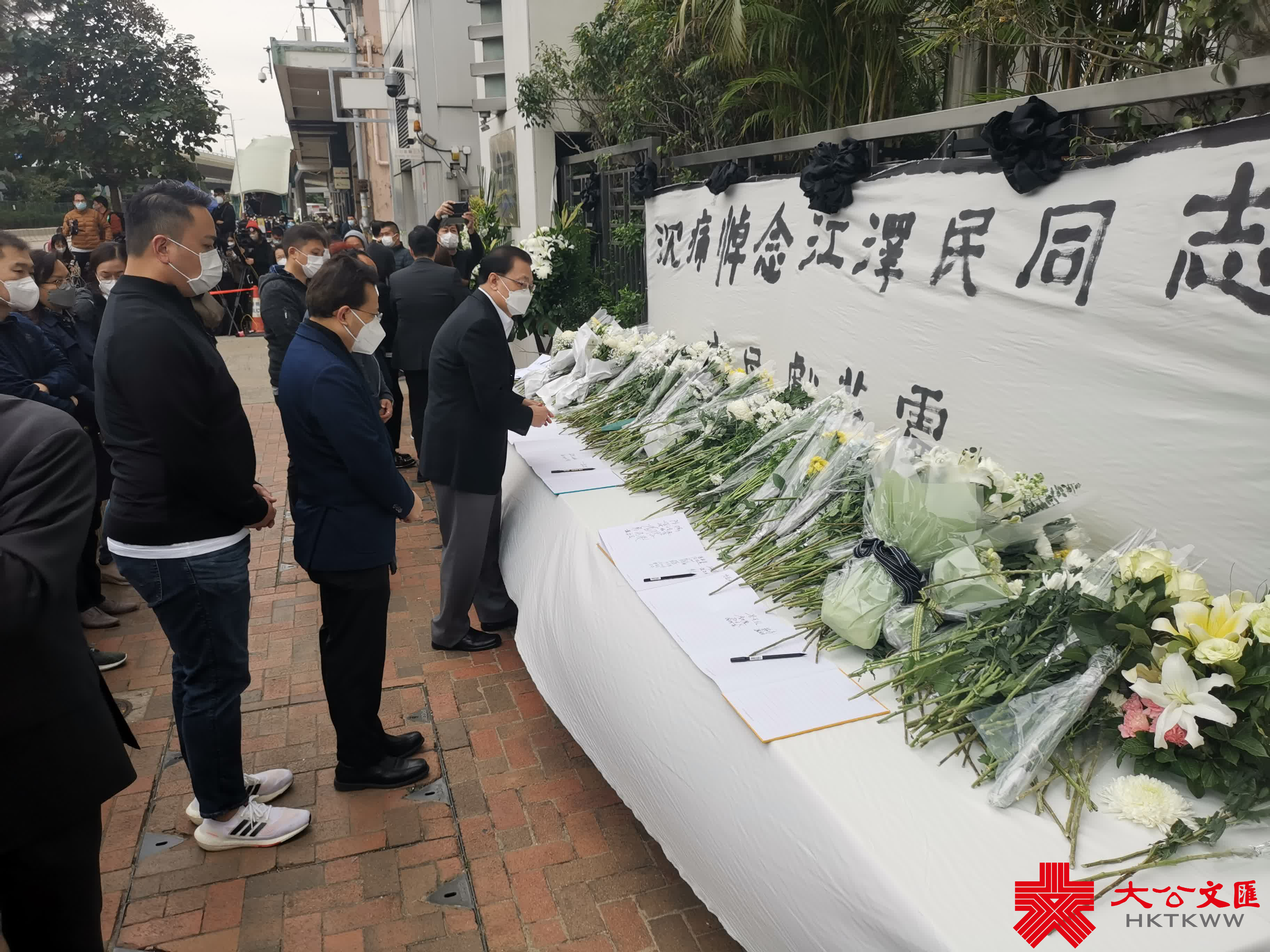 大公文匯全媒體報道,前國家主席江澤民昨日(11月30日)逝世,享年96歲。香港中聯辦今日(12月1日)發布公告表示,為表達對江澤民同志的無比崇敬和深切悼念之情,自今日下午至追悼大會舉行之日在辦公樓內設靈堂,接受香港地區各界弔唁,時間為每日上午9:30至12:00、下午2:30至5:30。李家超、梁振英等人下午前來弔唁。