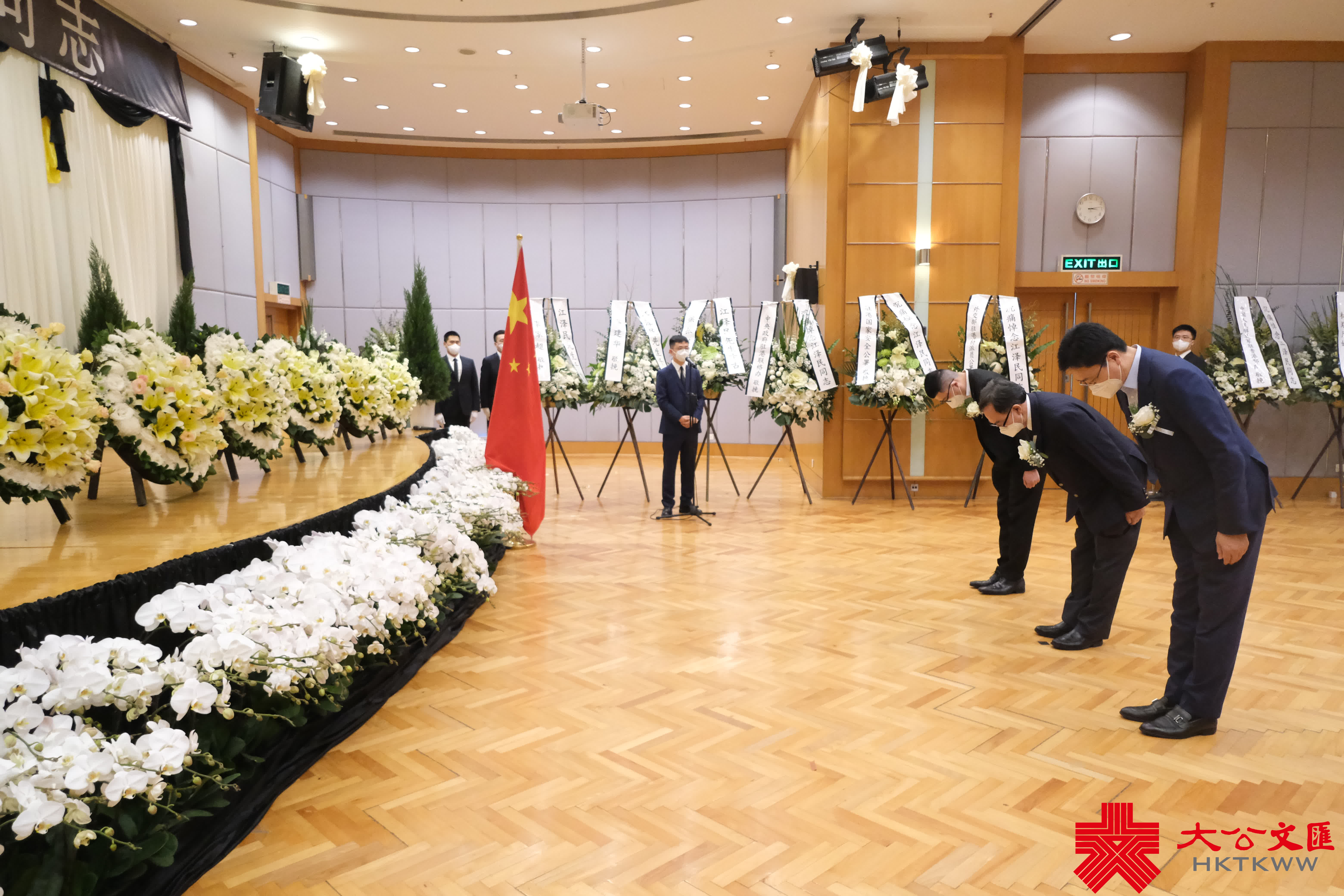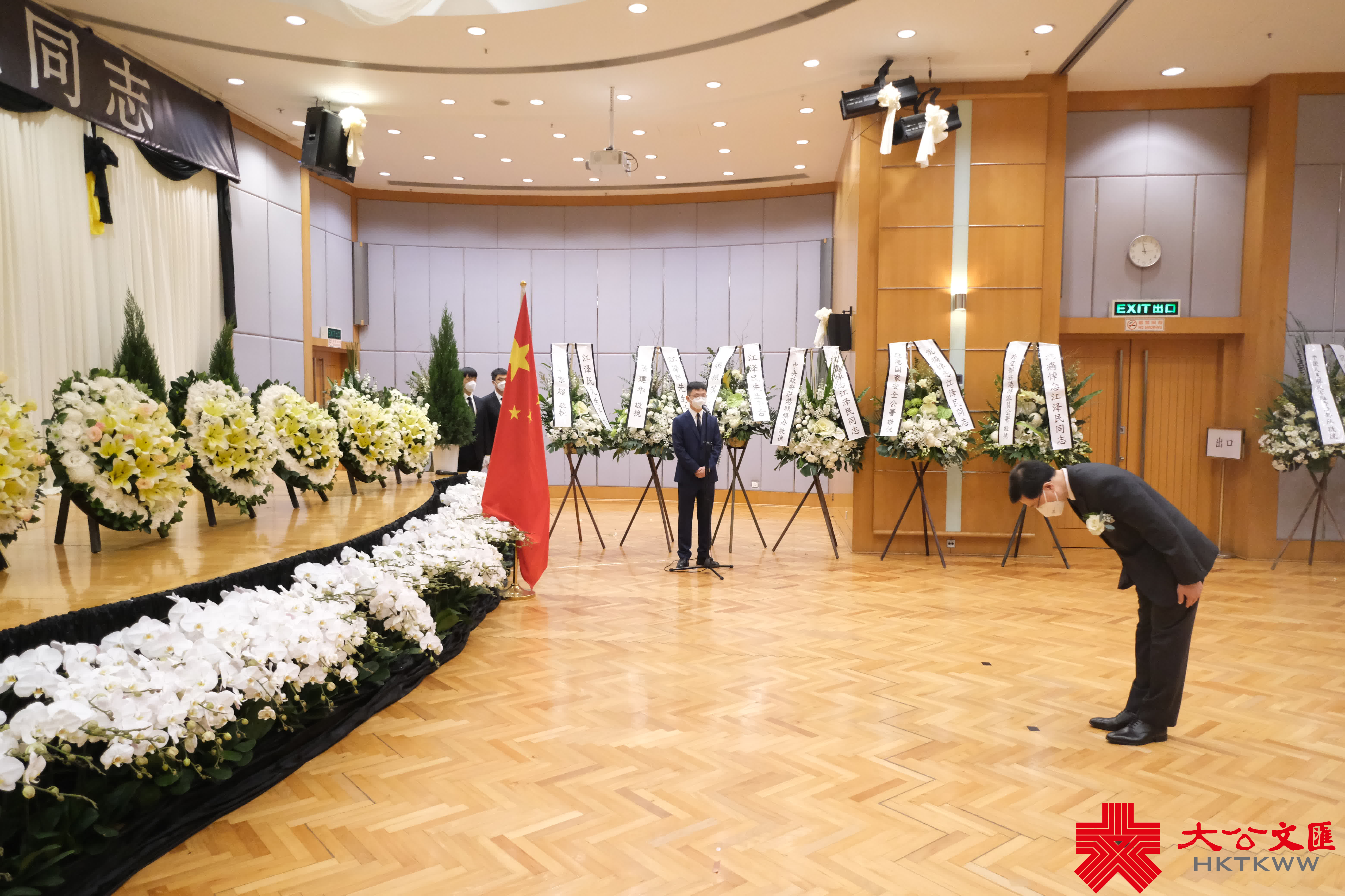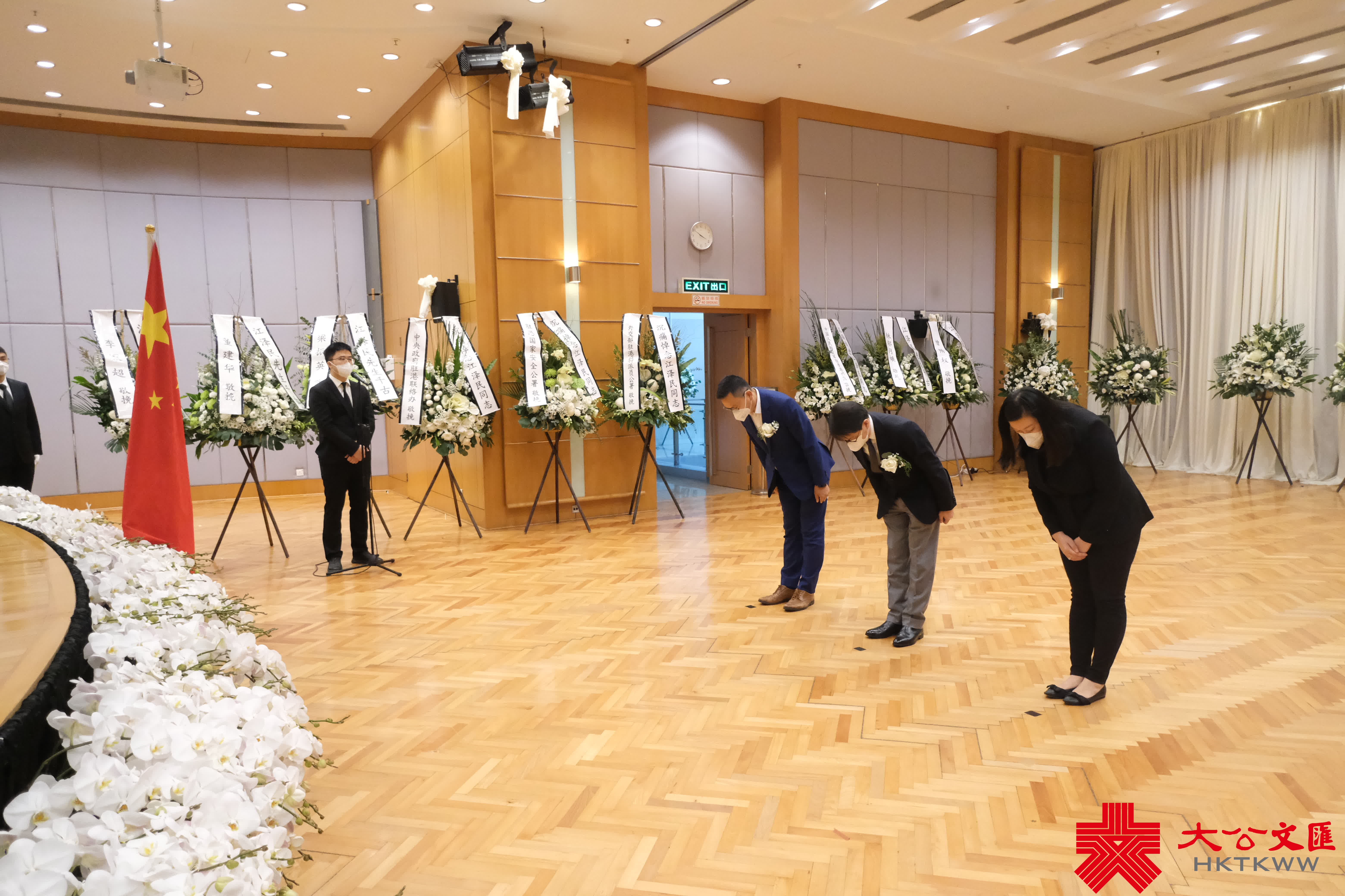 大公文匯全媒體報道,前國家主席江澤民昨日(11月30日)逝世,享年96歲。香港中聯辦今日(12月1日)發布公告表示,為表達對江澤民同志的無比崇敬和深切悼念之情,自今日下午至追悼大會舉行之日在辦公樓內設靈堂,接受香港地區各界弔唁,時間為每日上午9:30至12:00、下午2:30至5:30。李家超、梁振英等人下午前來弔唁。