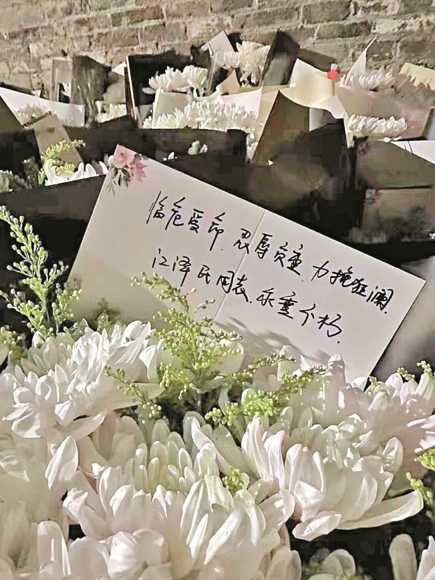 「我到得比較早,當時舊居門前人不多,但已有一束菊花放在門口。」許衛說,「是三枝白菊花,簡潔、靜穆而深情。」被深深打動的許衛拿出手機固定了這一瞬間。「我猜這三枝白菊花是寓意他的『三個代表』重要思想。」
