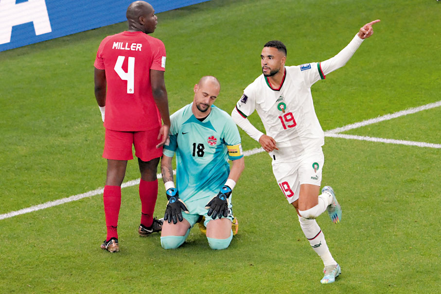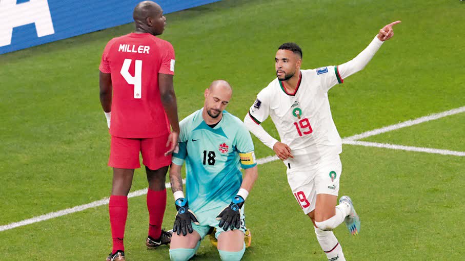 綜合賽前形勢,摩洛哥只要打敗已提前出局的加拿大,即可累積7分穩奪其中一個出線席位,開賽不足4分鐘,薛耶治已把握對手門將米蘭波贊嚴重犯錯,30碼外笠入空門打開紀錄。