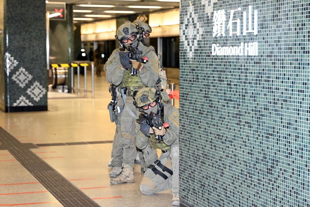 大公文匯全媒體報道,警方於今日(3日)在鑽石山港鐵站舉行代號「風行」(WINDWALK)的反恐演習。