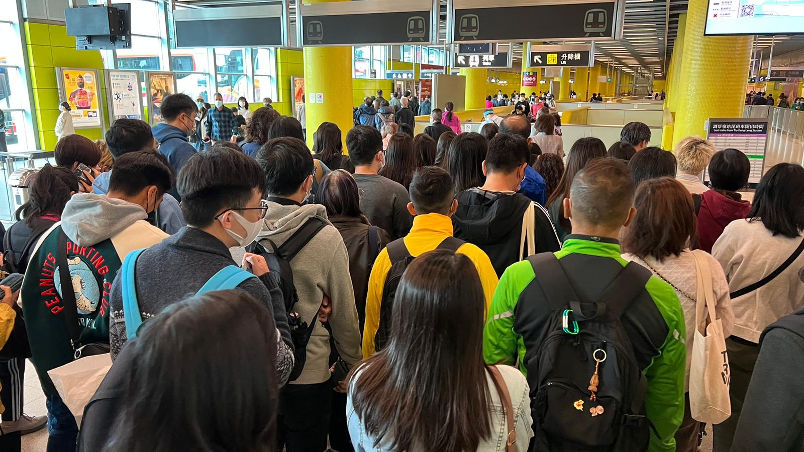 港鐵已經關閉將軍澳車站,不讓乘客進入,並疏散站內乘客。港鐵又呼籲乘客為行程預留充裕時間,並考慮使用其他交通工具。