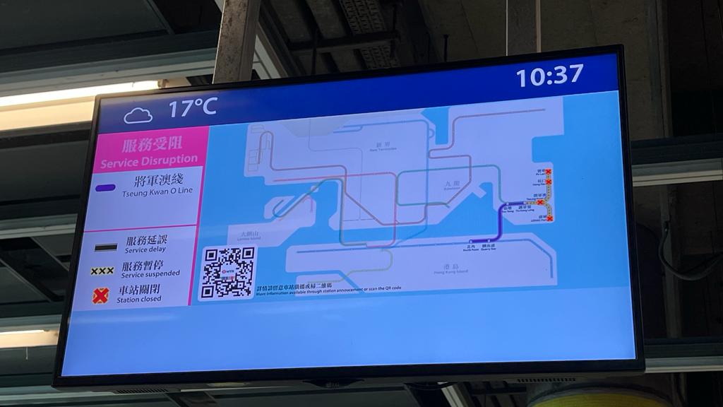 港鐵表示,將軍澳綫一列列車今早機件故障,相關的安全防護裝置發揮作用,於距離車站一段路程制停列車。及後有約1500名乘客沿隧道步行至將軍澳站月台離開。車廂上兩名女乘客不適送院,其中一名是孕婦,由救護車送往將軍澳醫院,送院時清醒。